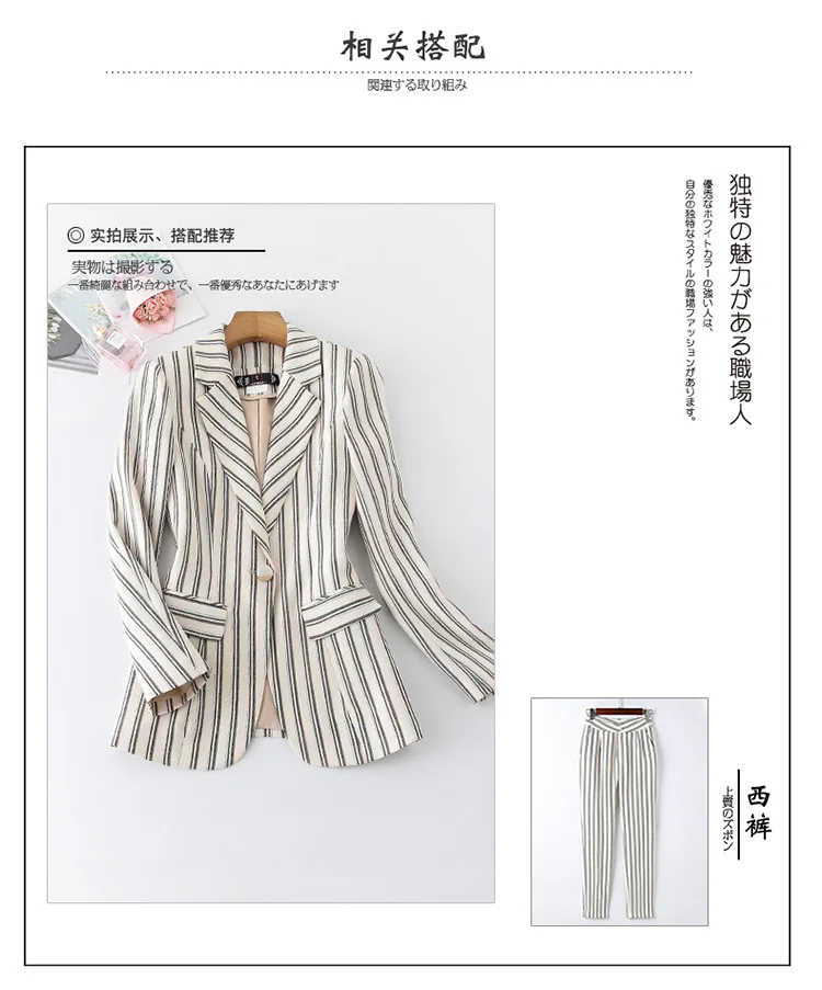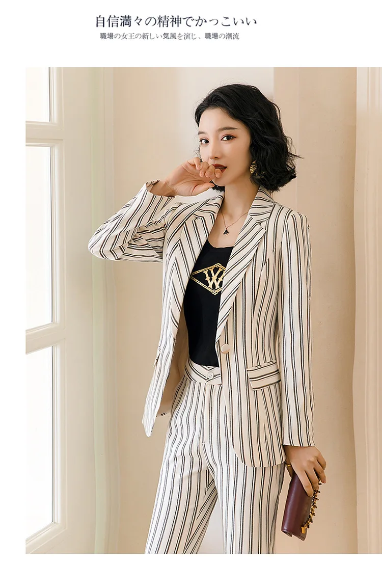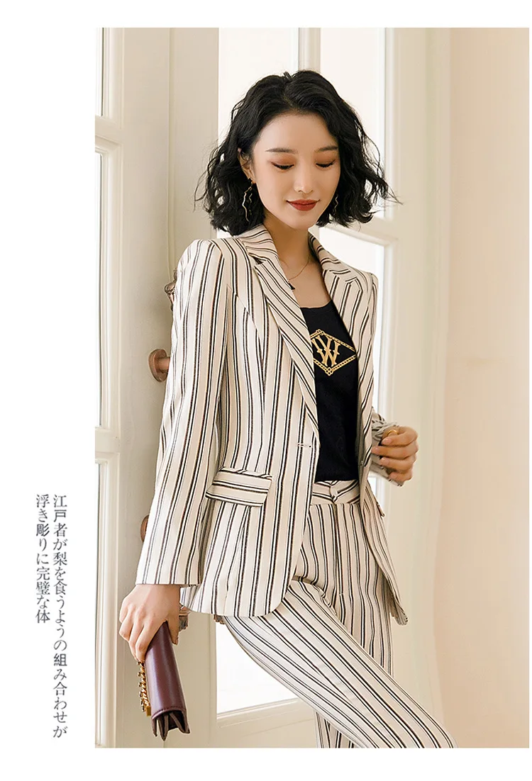 | Hot Female Office Work Formal Stripe Long Pant Suits Women's Suit Lady Uniform 2 Piece Set Blazer Trouser Jacket Suits Plus Size |