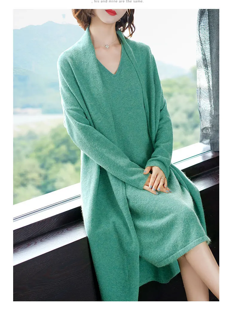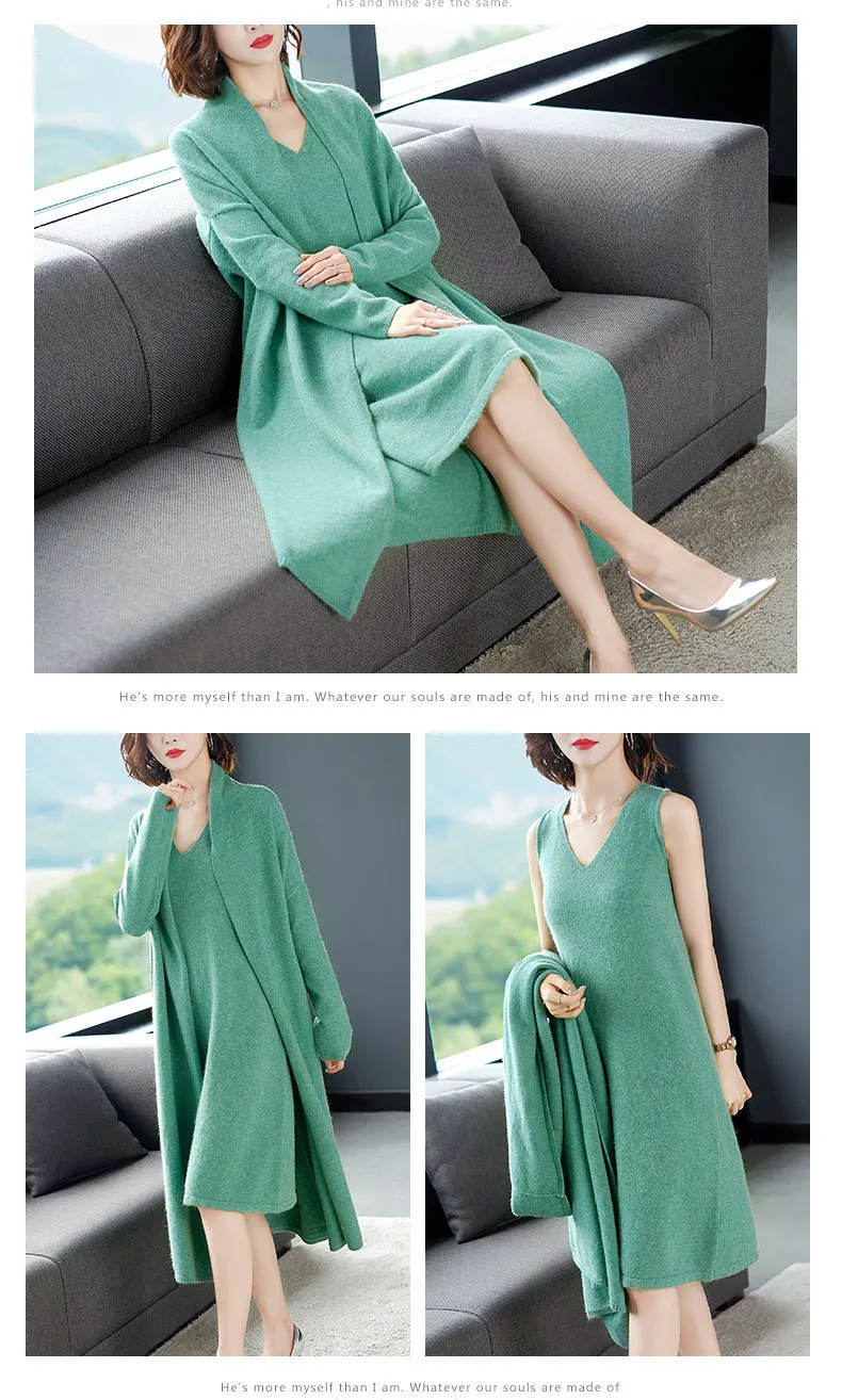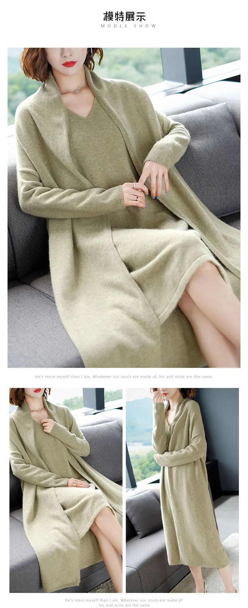 | Knitted Dress Suit Tracksuit Women Set 2 Piece Long Jacket Knit Sweater Midi Dress Ladies Clothes Female Spring Autumn Plus Size |