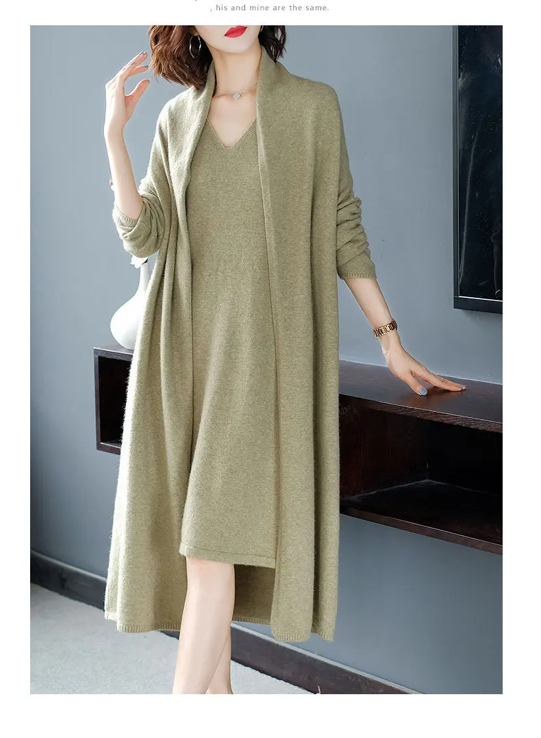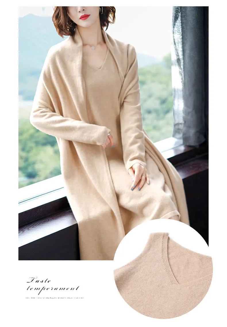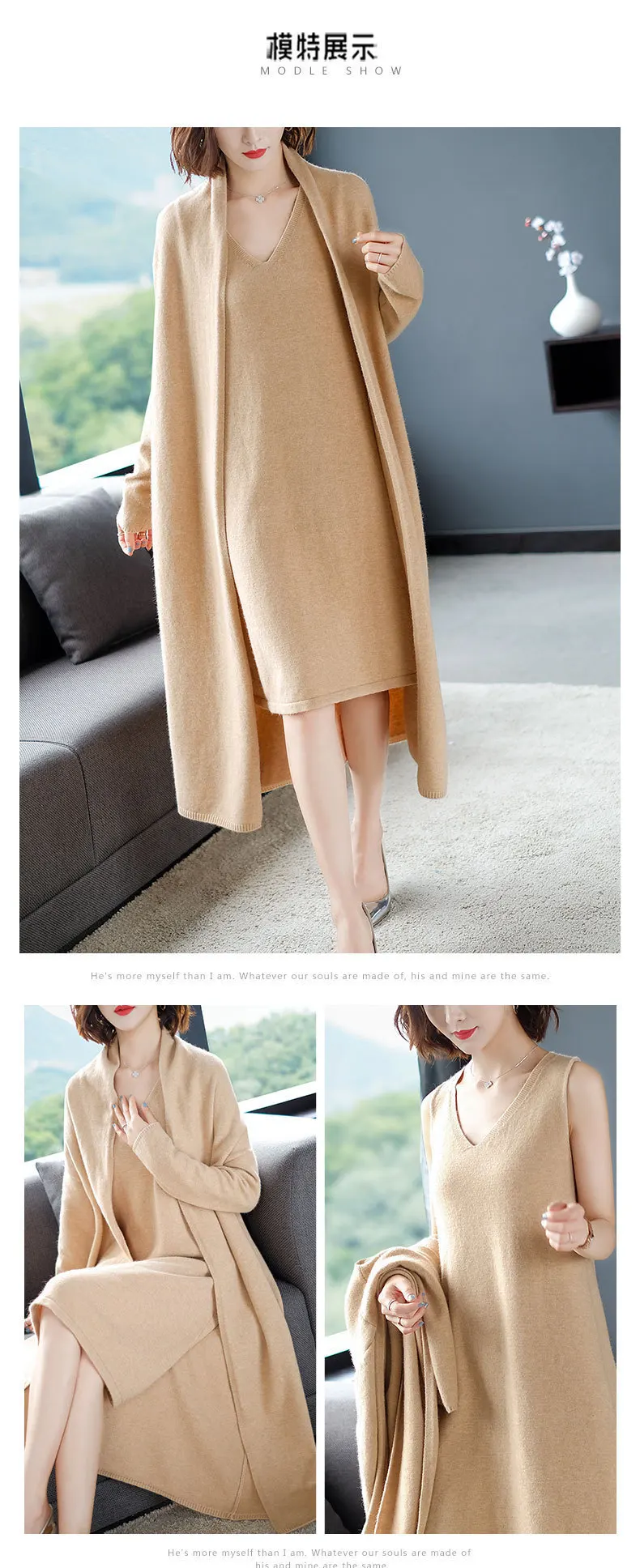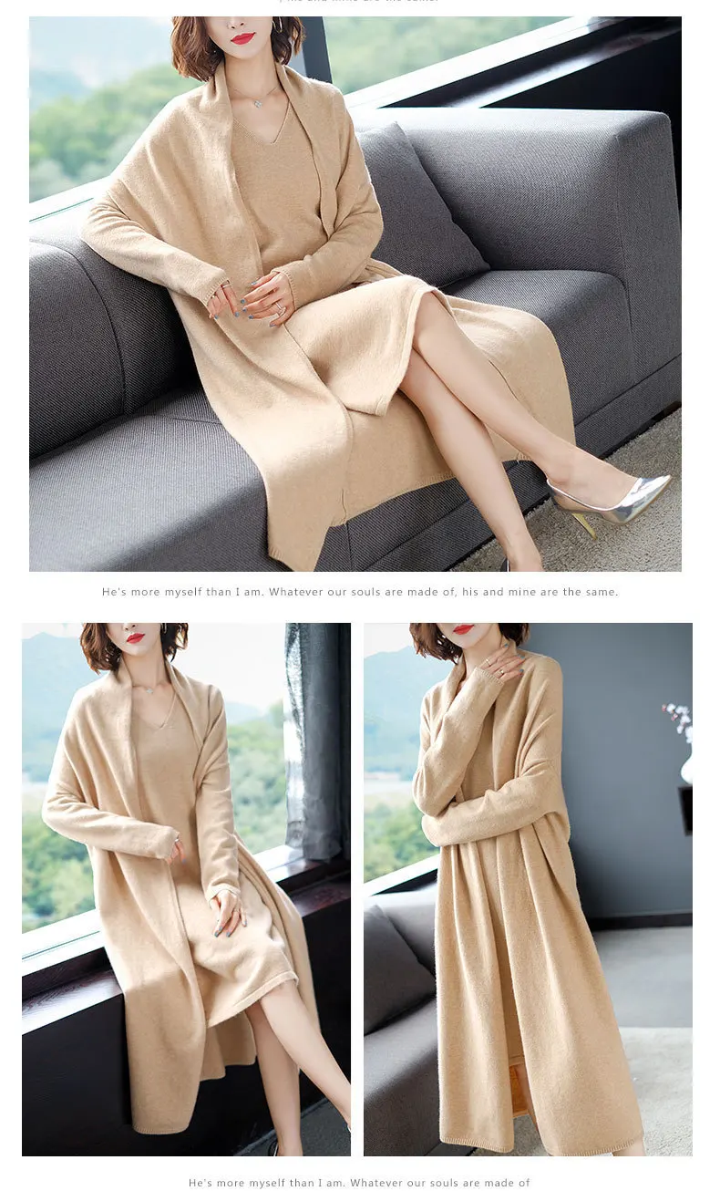 | Knitted Dress Suit Tracksuit Women Set 2 Piece Long Jacket Knit Sweater Midi Dress Ladies Clothes Female Spring Autumn Plus Size |