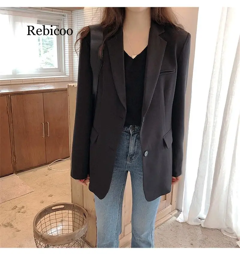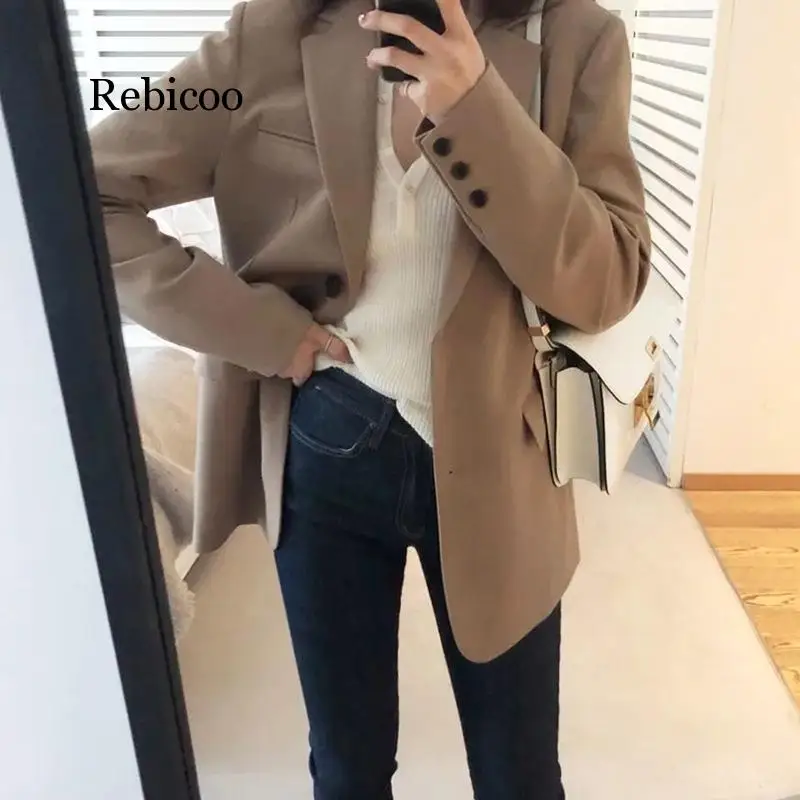 OL 2019 New Autumn Solid Color Casual Blazer Ladies Loose Plain Plain Chic Jackets Fashion Coat Plus Size XL bleiser femininoBuy Now On Aliexpress
