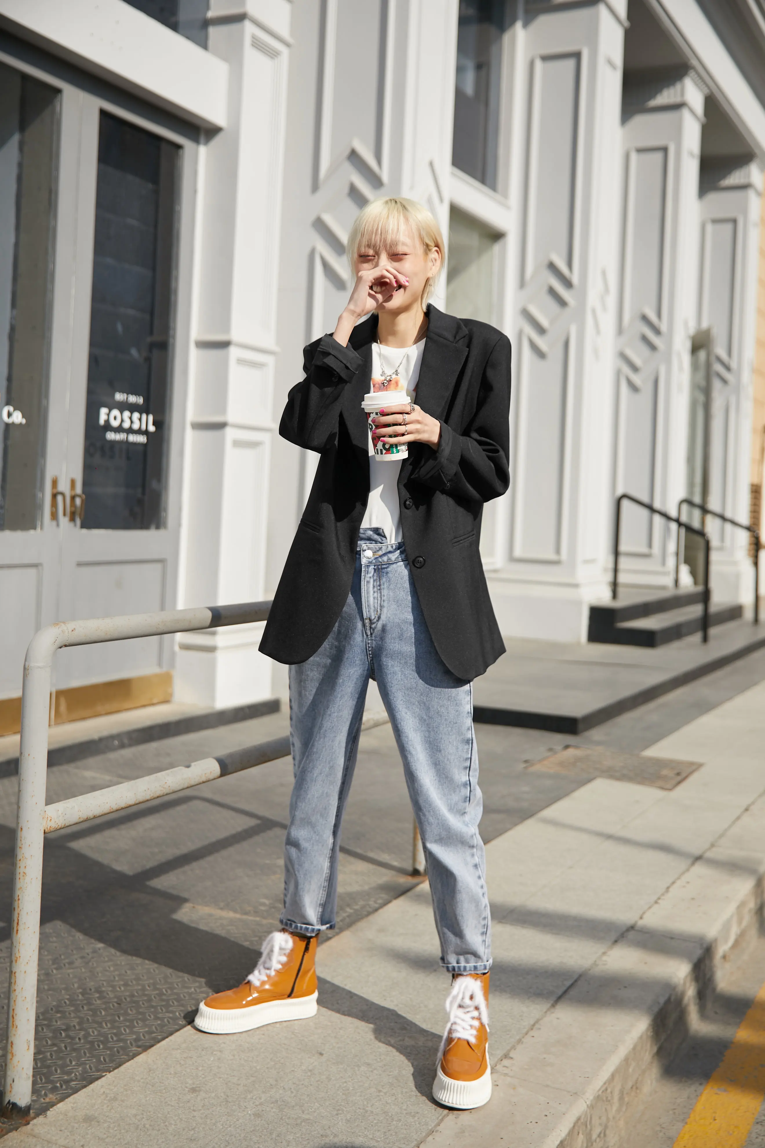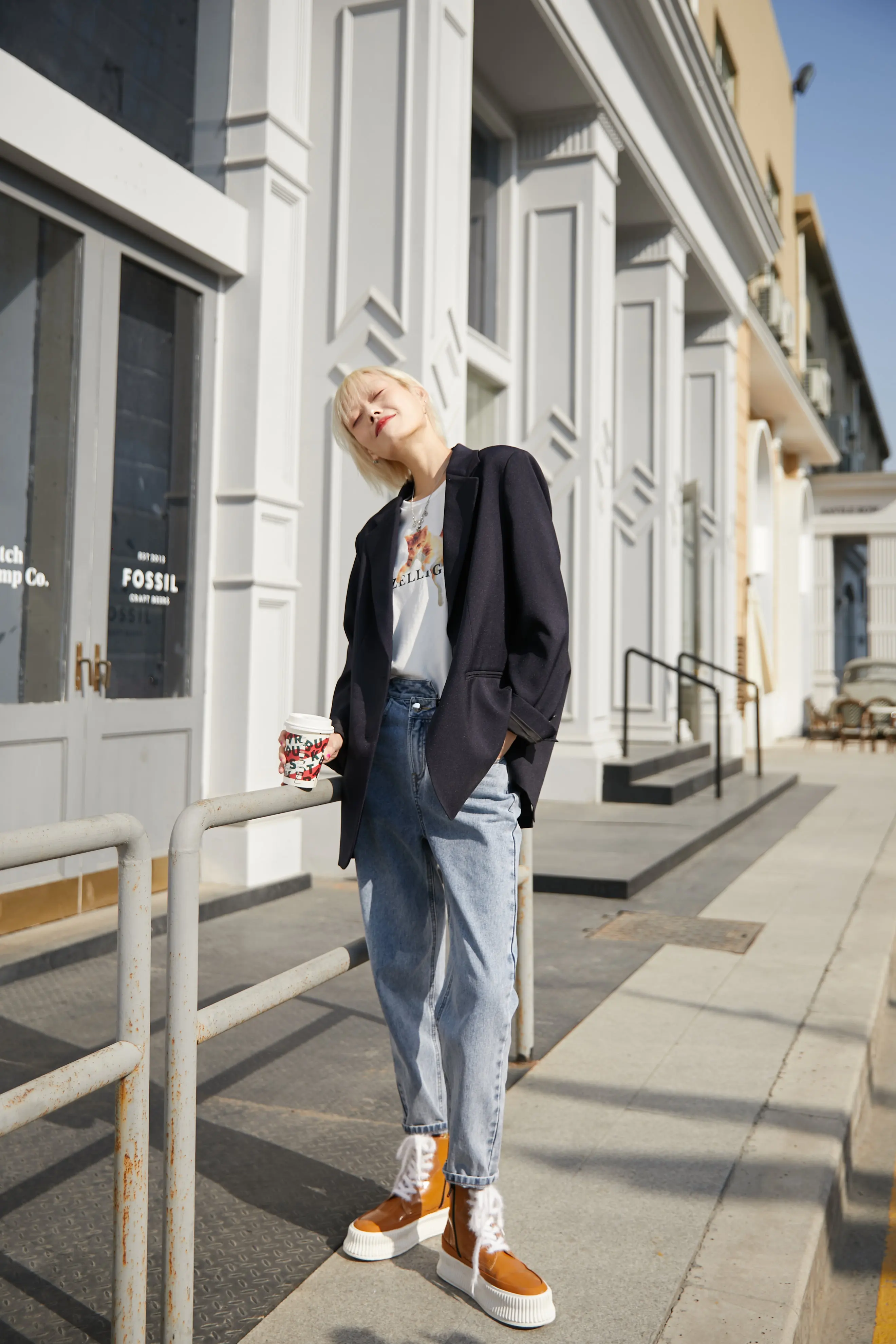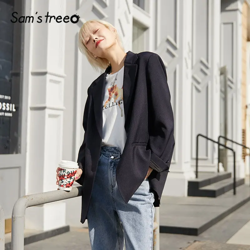 SAM'S TREE White Solid Double Button Korean Style Women Blazers 2020 Spring Graphic Print Sleeve Loose Casual Ladies Daily coatsBuy Now On Aliexpress