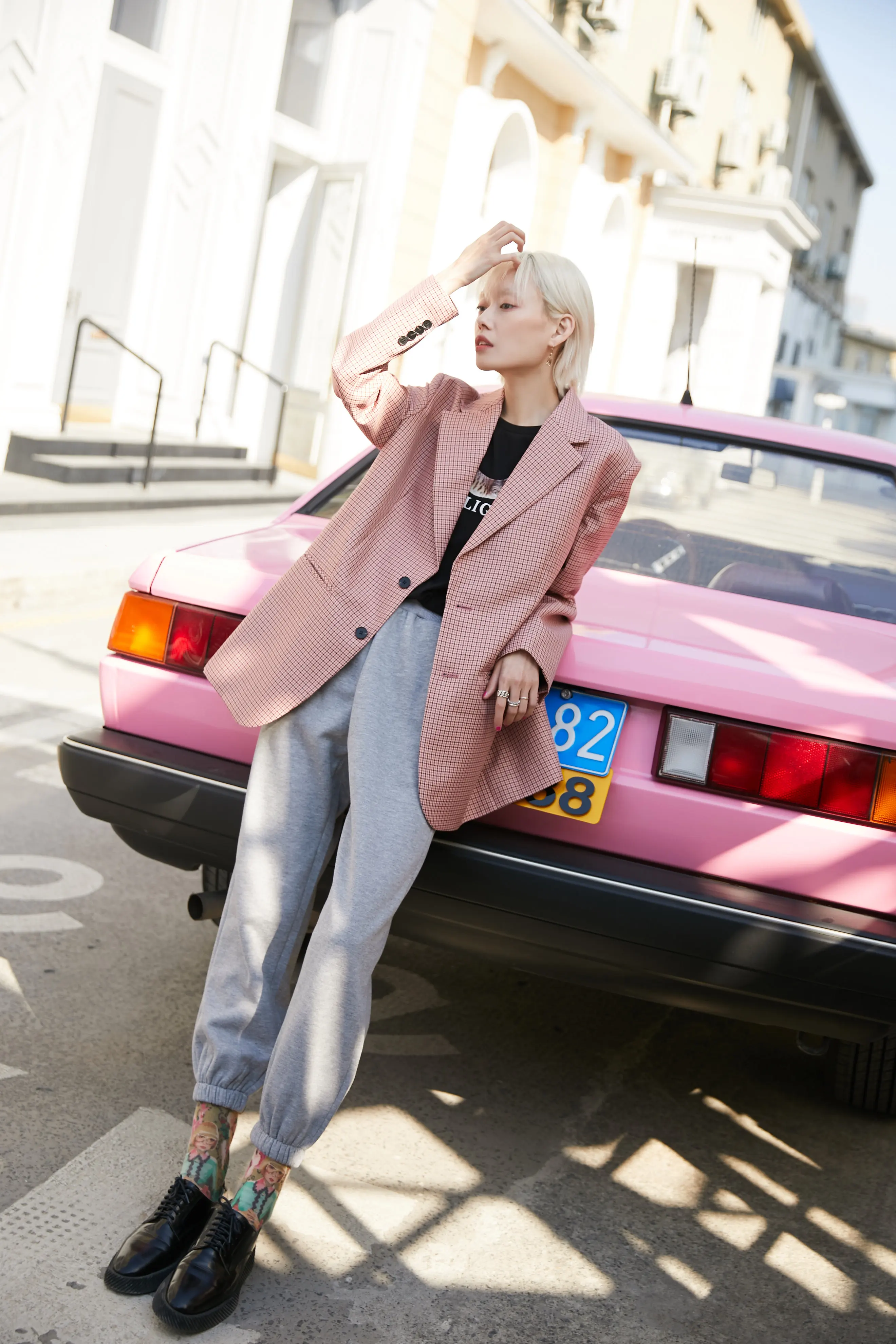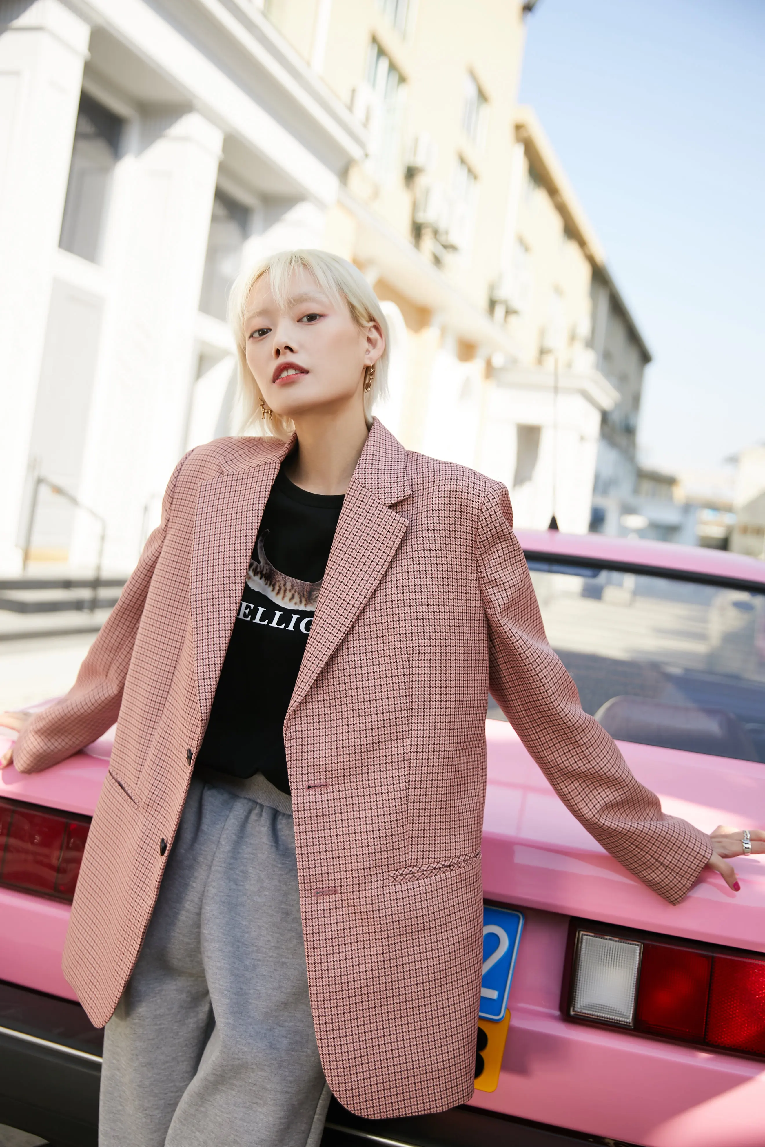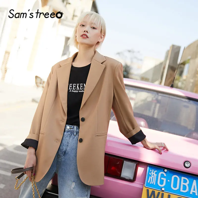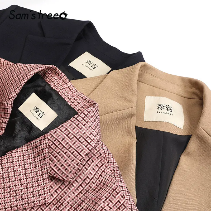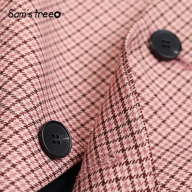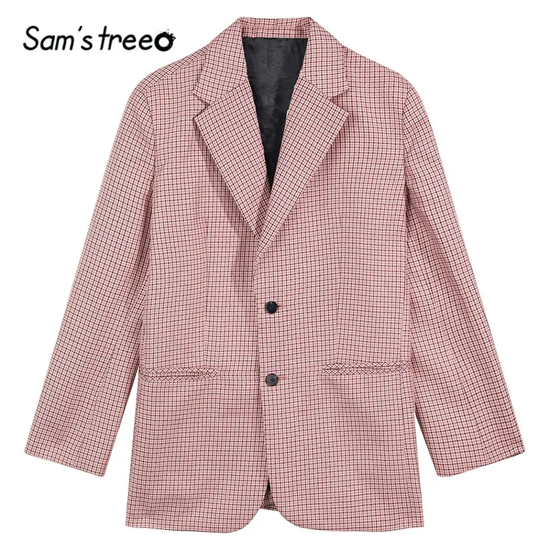 | SAM'S TREE Korean Oversize Women Blazer 2020 Spring Pink Plaid British Style Office Ladies Loose Jacket Brown Female Blazers |