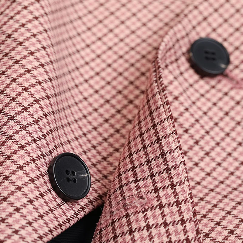Vintage Double Breasted Office Ladies Plaid Blazer Long Sleeve Loose Houndstooth Suit Coat Jacket Women blazers Female 2019