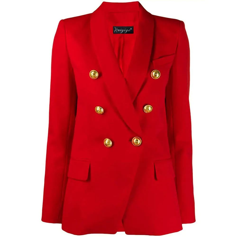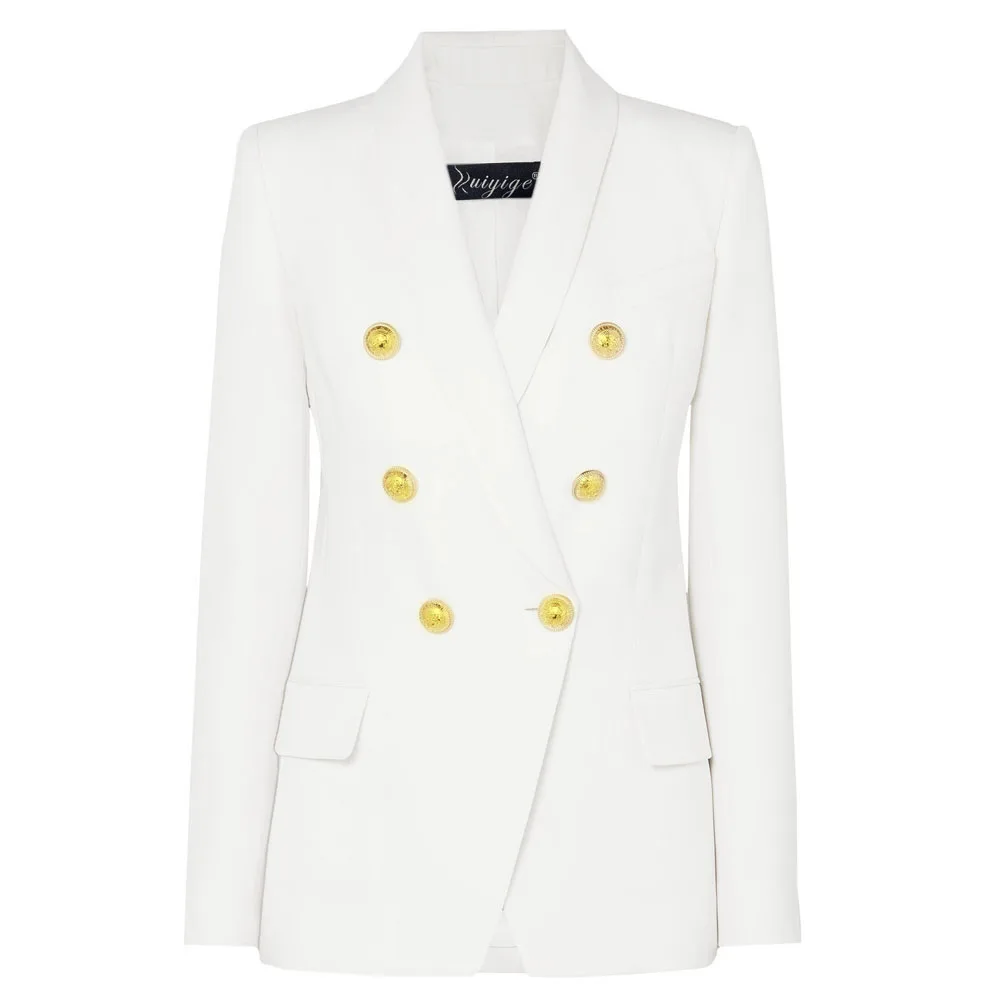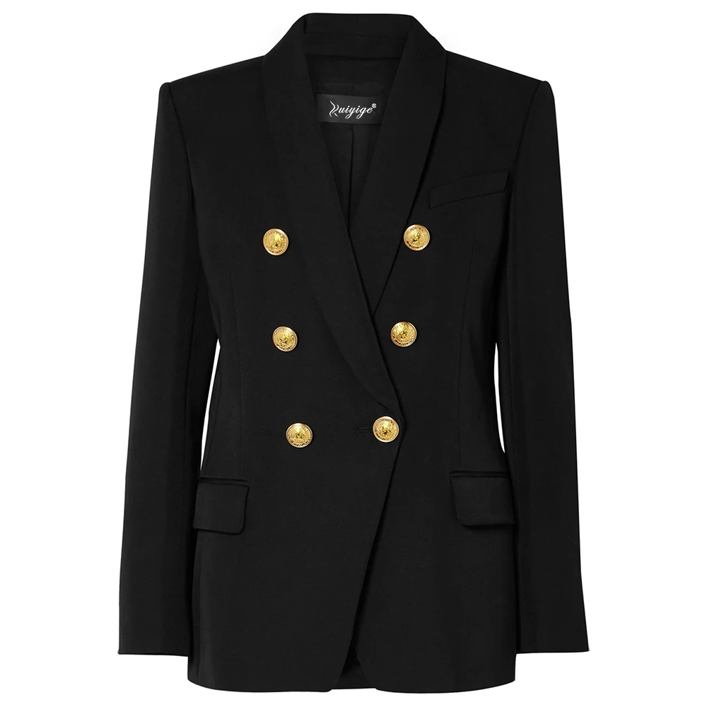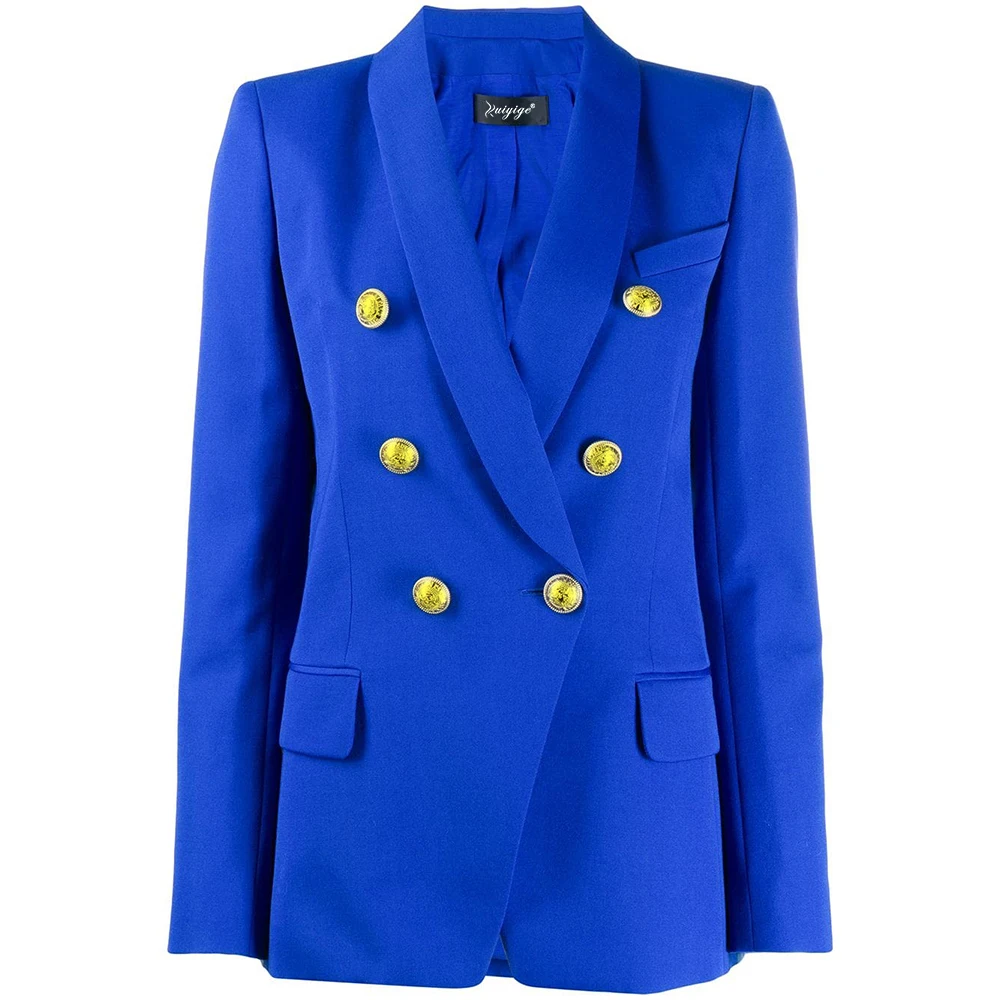 2019 Autumn Winter Fashion Blazer Coats Women Long Sleeve Double-Breasted Metal Buttons Elegant Slim Office Suit Outerwear Tops