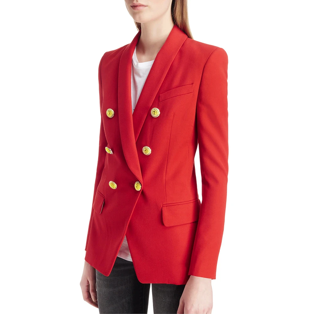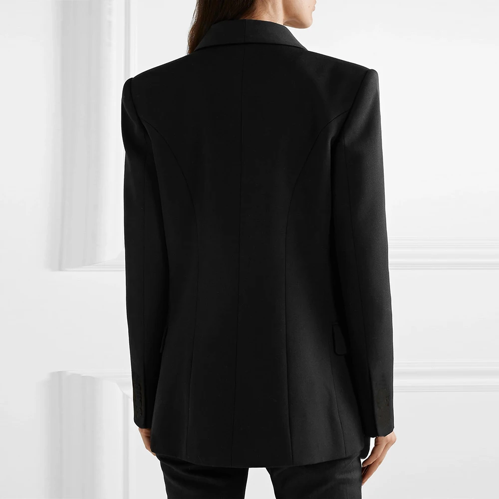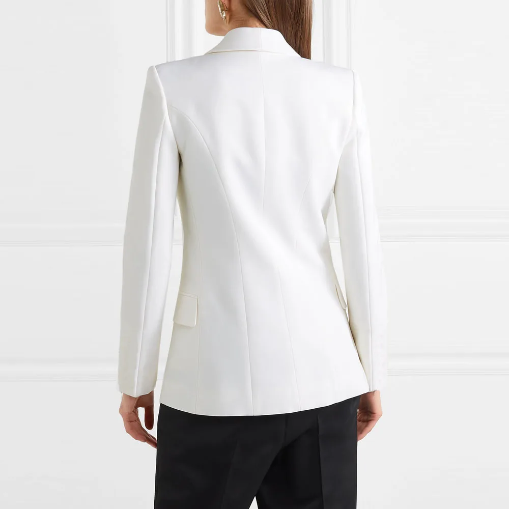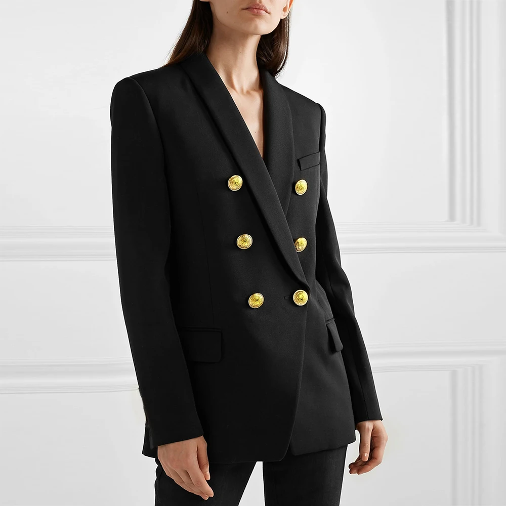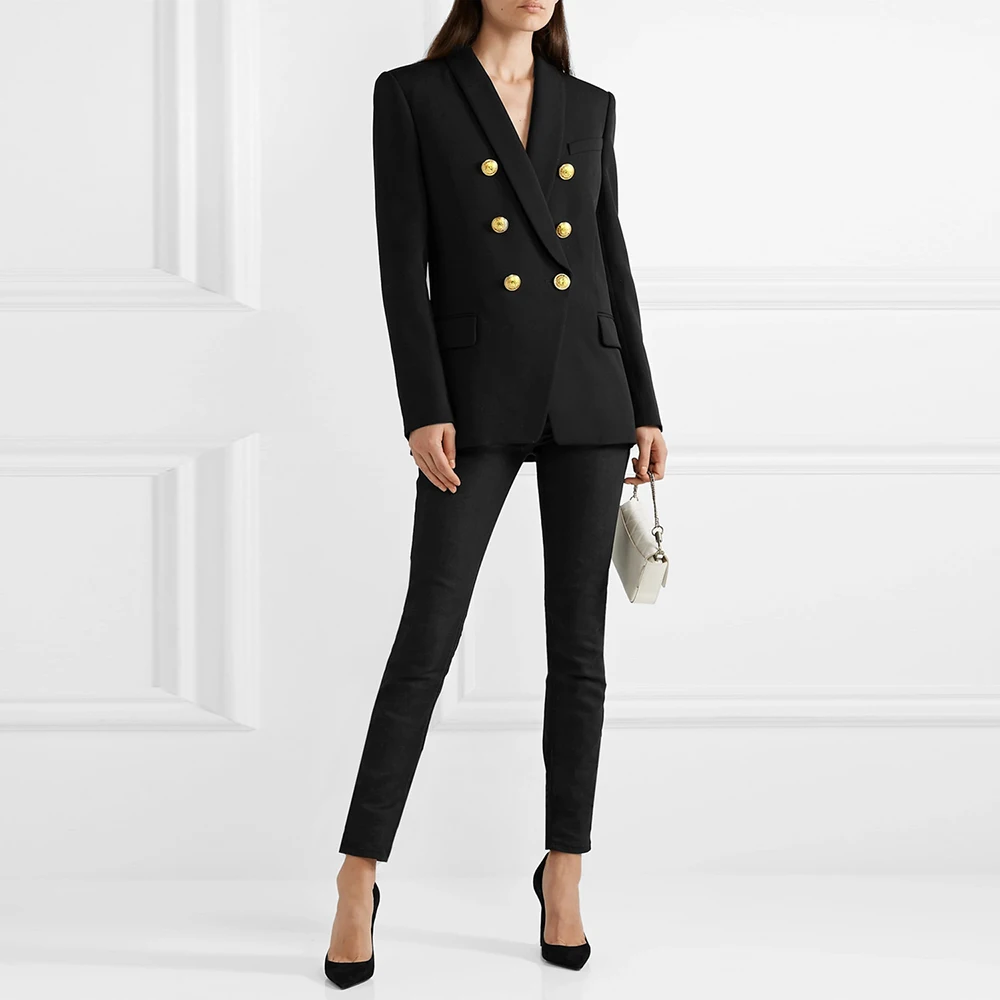 2019 Autumn Winter Fashion Blazer Coats Women Long Sleeve Double-Breasted Metal Buttons Elegant Slim Office Suit Outerwear Tops