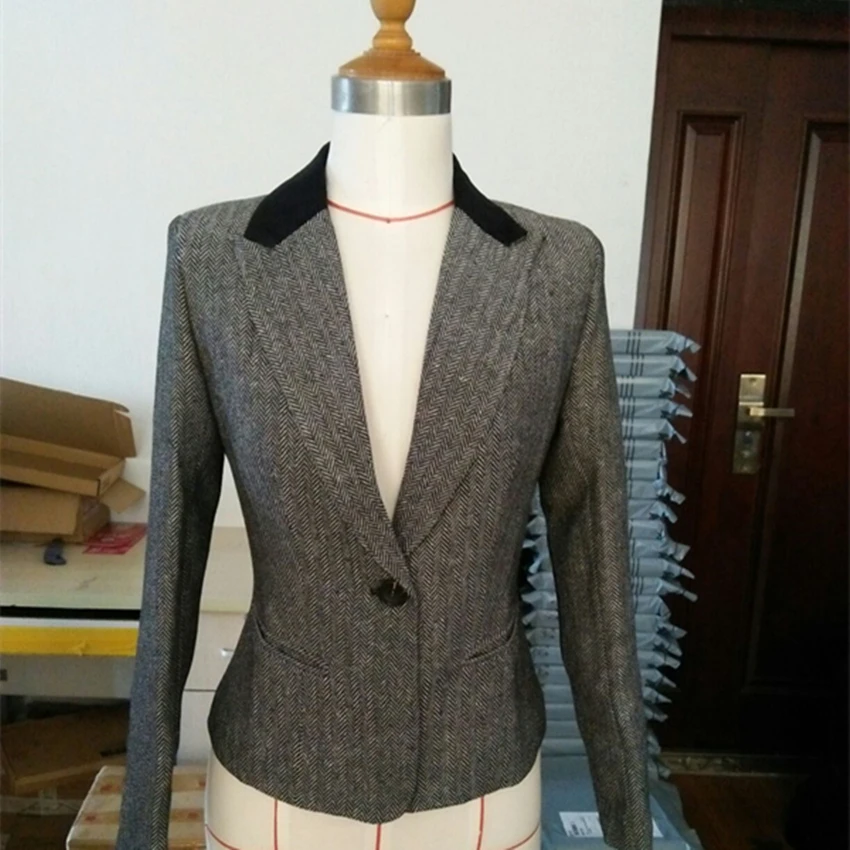 Features: british style jacket woman,Herringbone