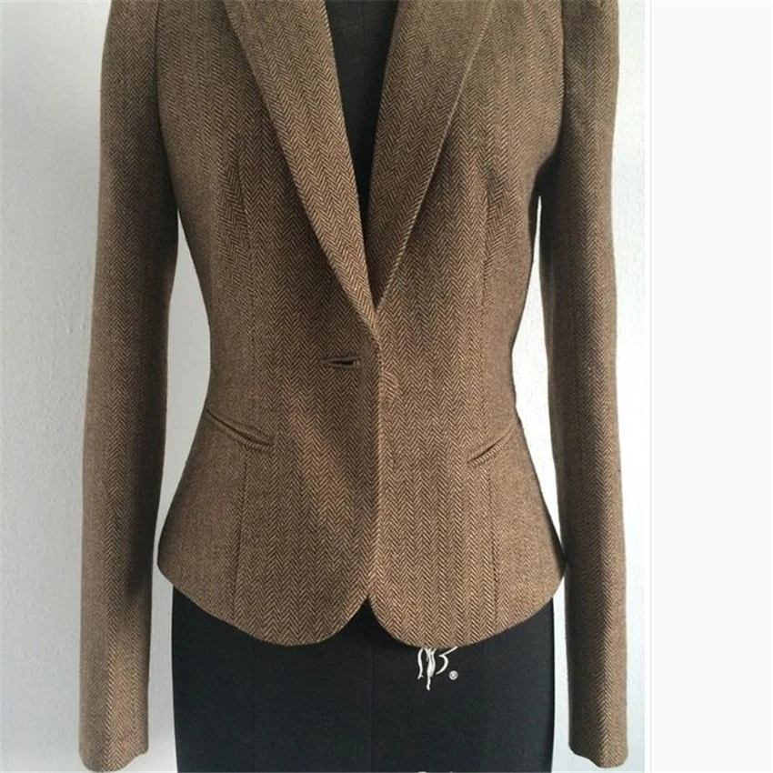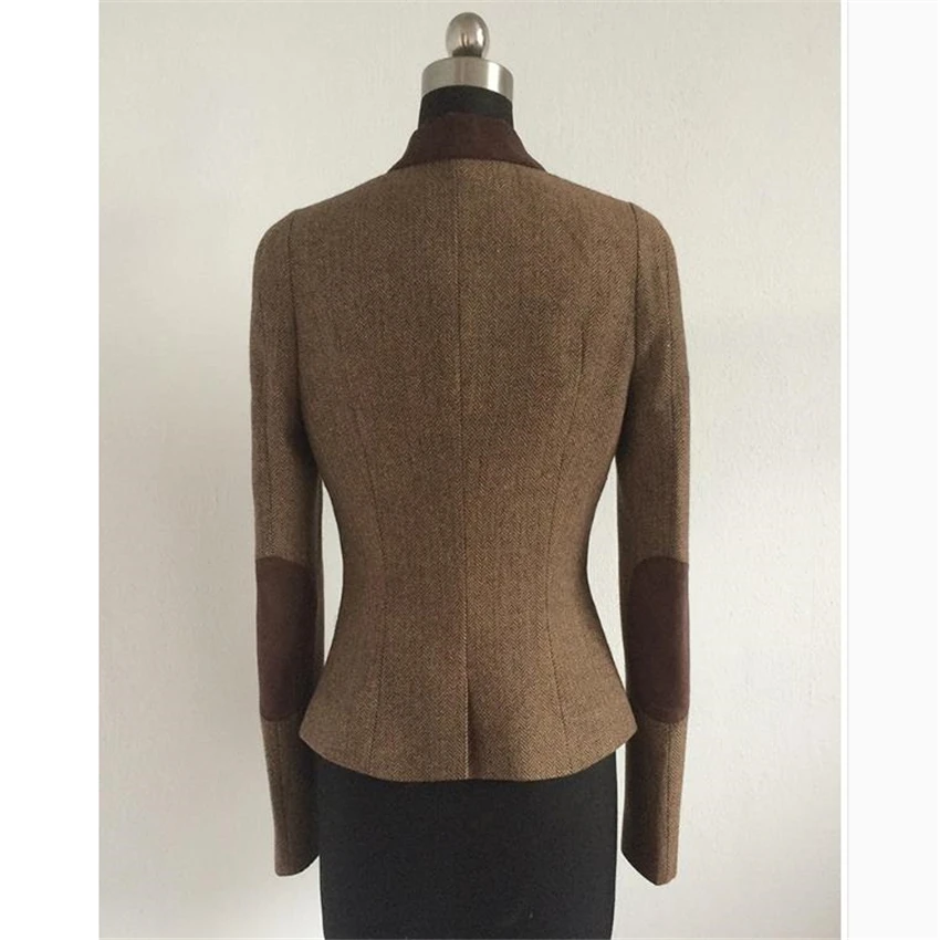 Product Name: SHOWERSMILE Ladies Blazers British Style Womens Tweed Jacket Herringbone Vintage Coffee Long Sleeve Women Blazers And Jackets