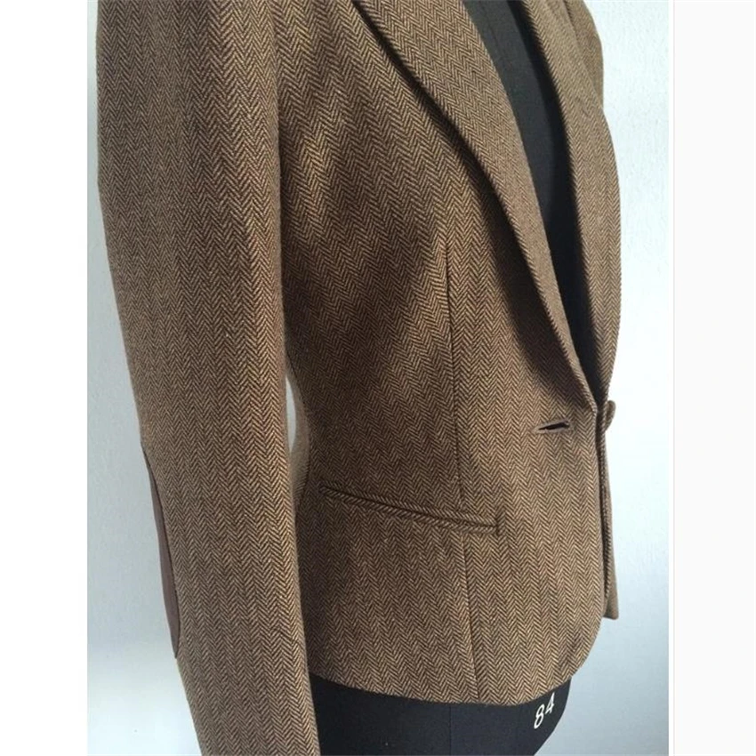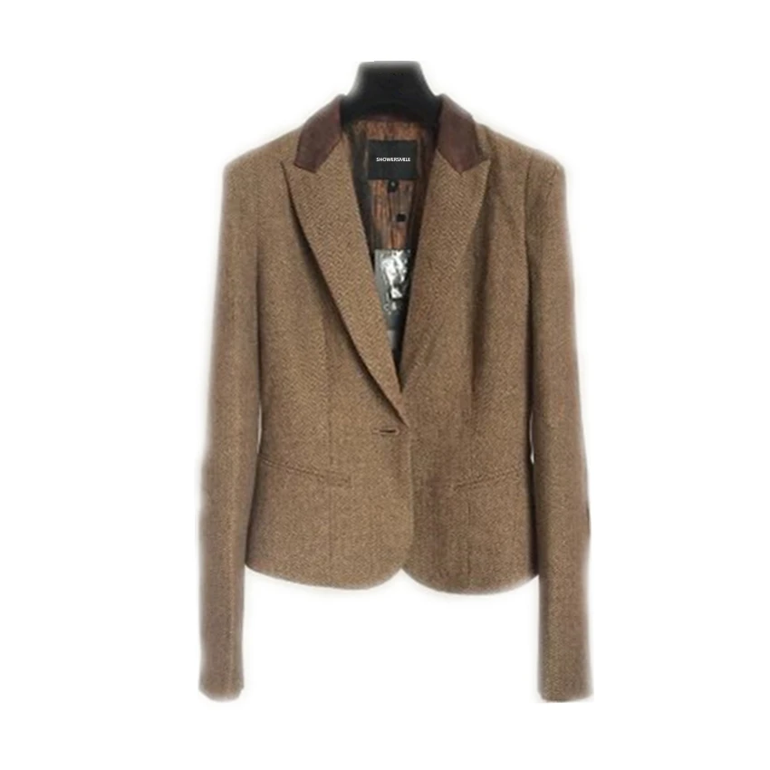 | SHOWERSMILE Ladies Blazers British Style Womens Tweed Jacket Herringbone Woolen Vintage Coffee Spring Women Blazers And Jackets |