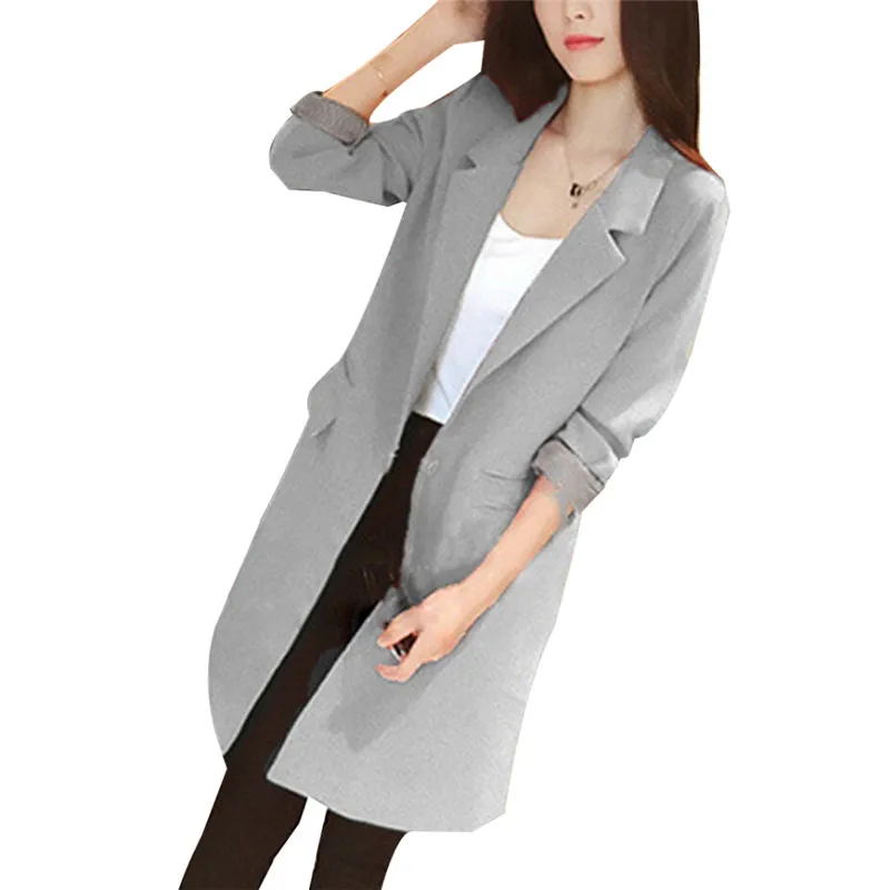 Autumn Winter Women Long Blazers Jackets Single Button Casual Solid Black Long Sleeve Blazer Coat Mujer Feminino Longo Plus SizeBuy Now On Aliexpress