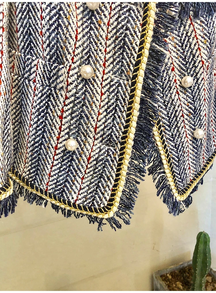 | Tweed Striped Blazer Women 2019 Red Blue Autumn Winter Jacket Coat Mujer Luxury Brand Runway Double Breasted Ladies Female Tops |