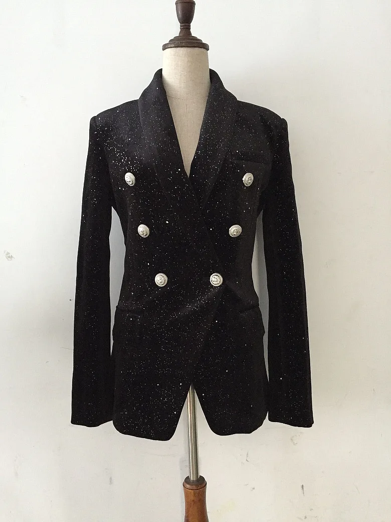 | Womens Stars Blazers Double Breasted Shiny Runway Designer Brand Slim High Quality Suit Jacket Coat Female Sexy Party Outwear |