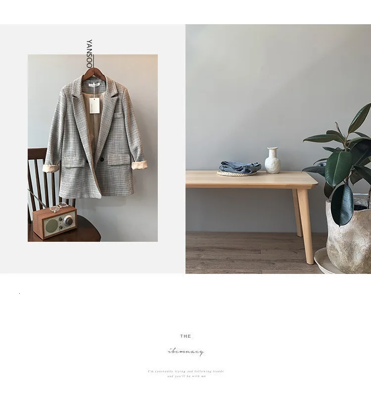 2018 Blazers Women's Slim Fit Blazer Suit Jacket Khaki Gray plaid Women Plus Size Casual Vintage Suit Blazer Female L104Buy Now On Aliexpress