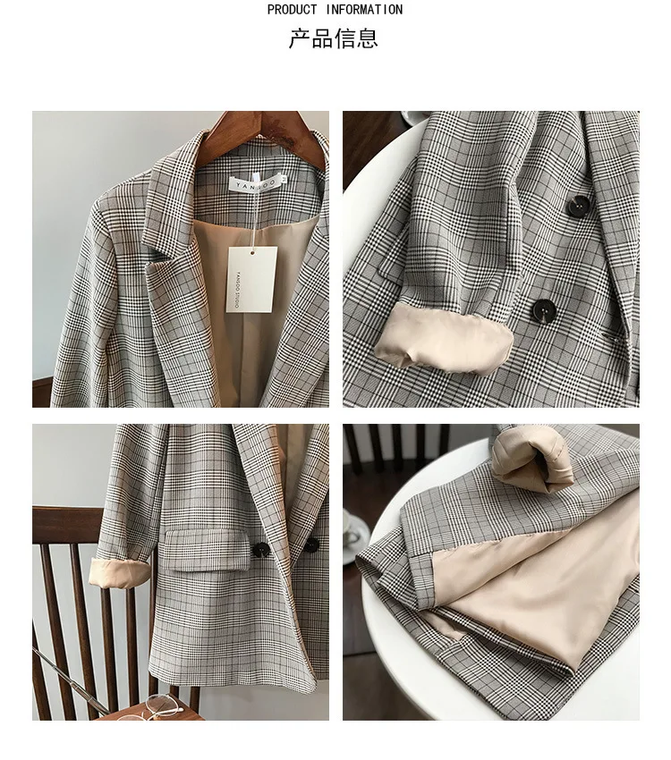 | 2019 Early Spring Retro Checked Suit Coat Woman Loose Casual Blazer Jacket Female Classic Plaids Tops Outerwear Clothing |