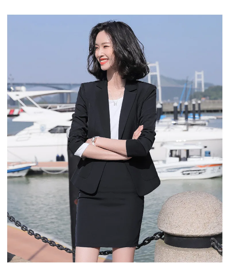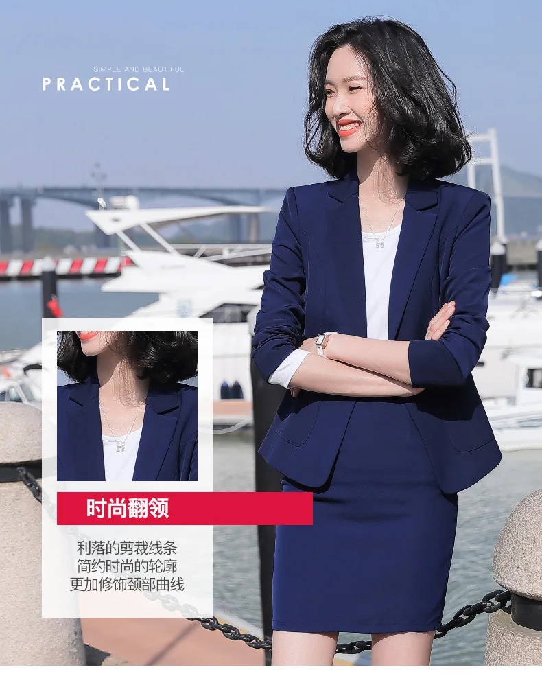 Pink Black Navy blue Female elegant Women's Skirt Suits suit dress costumes office wear Blouse skirt and jacket set 2 set piece