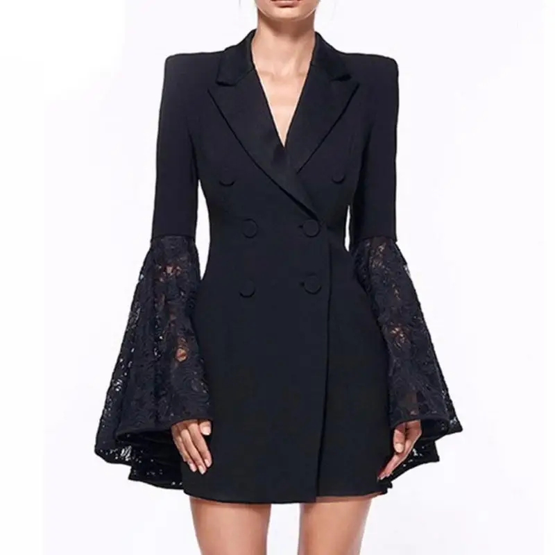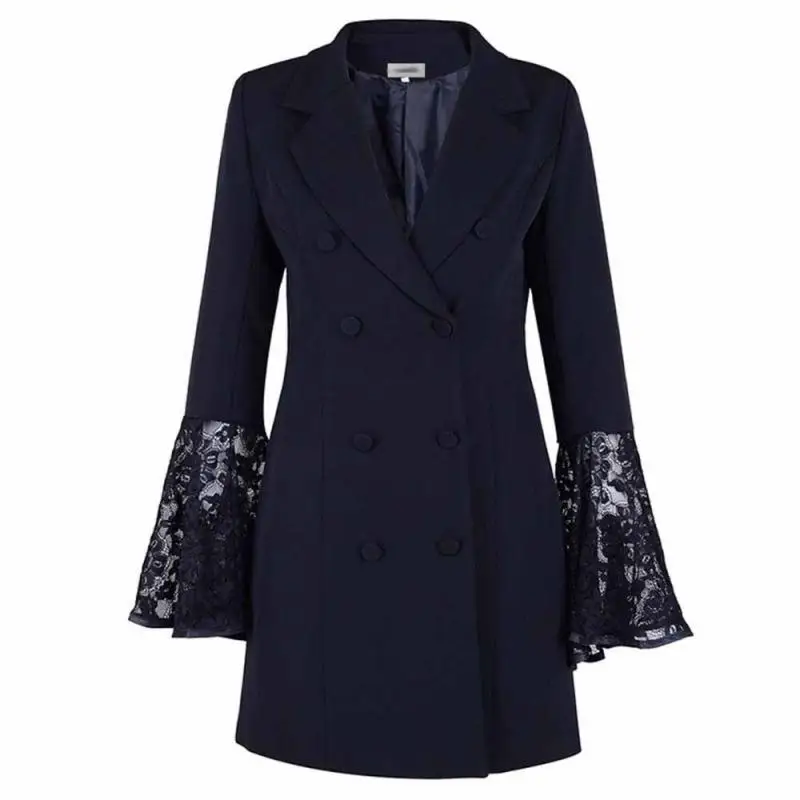 | Autumn Winter Women Blazer mujer 2020 Long Flare Sleeve Double-breasted Office Jackets Female Plus Size Elegant Blazer feminino |
