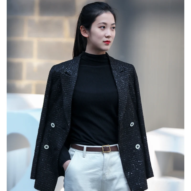 | Fashion Korean Style Designer Sequin Beading Women Slim High Street Elegant Stage Suit Jacket Coat Blaser Femme Autumn Winter |