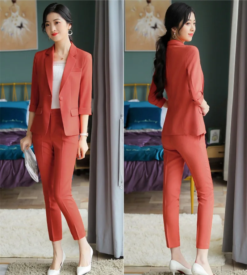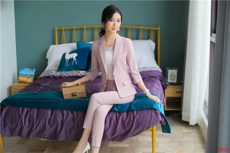 2020 New Female Formal Elegant Women Office Lady Pant Suits of Business OL Blazer Suit Jackets Length Trouser Two Pieces SetBuy Now On Aliexpress