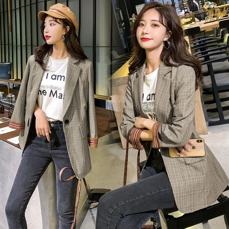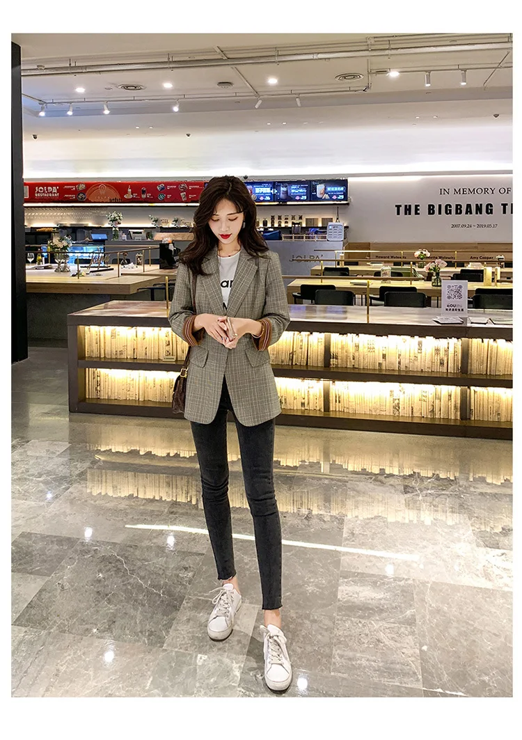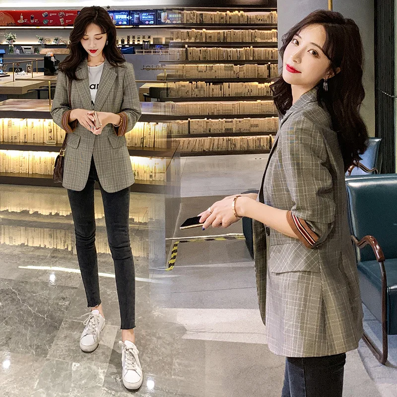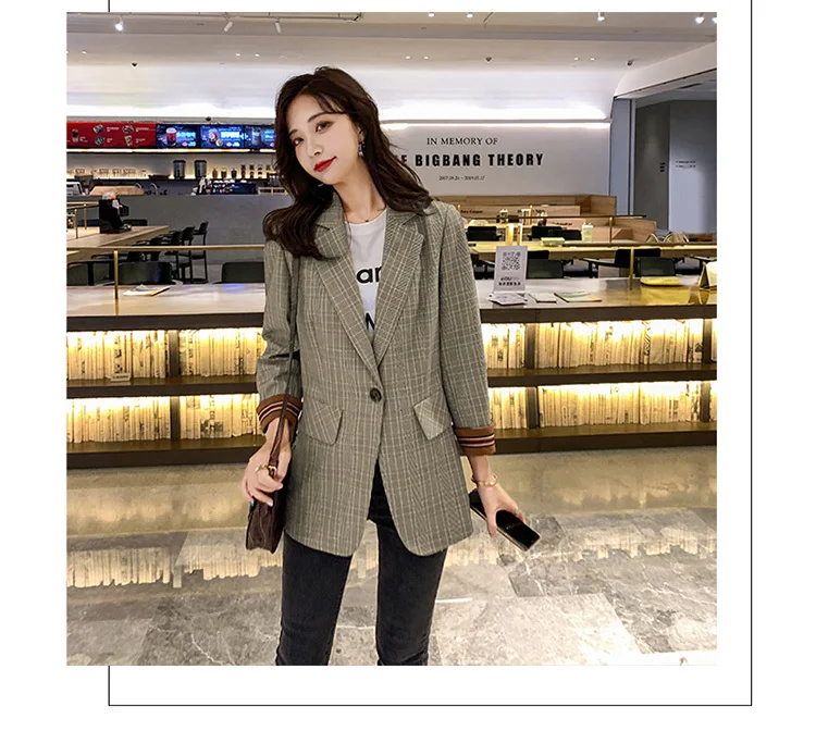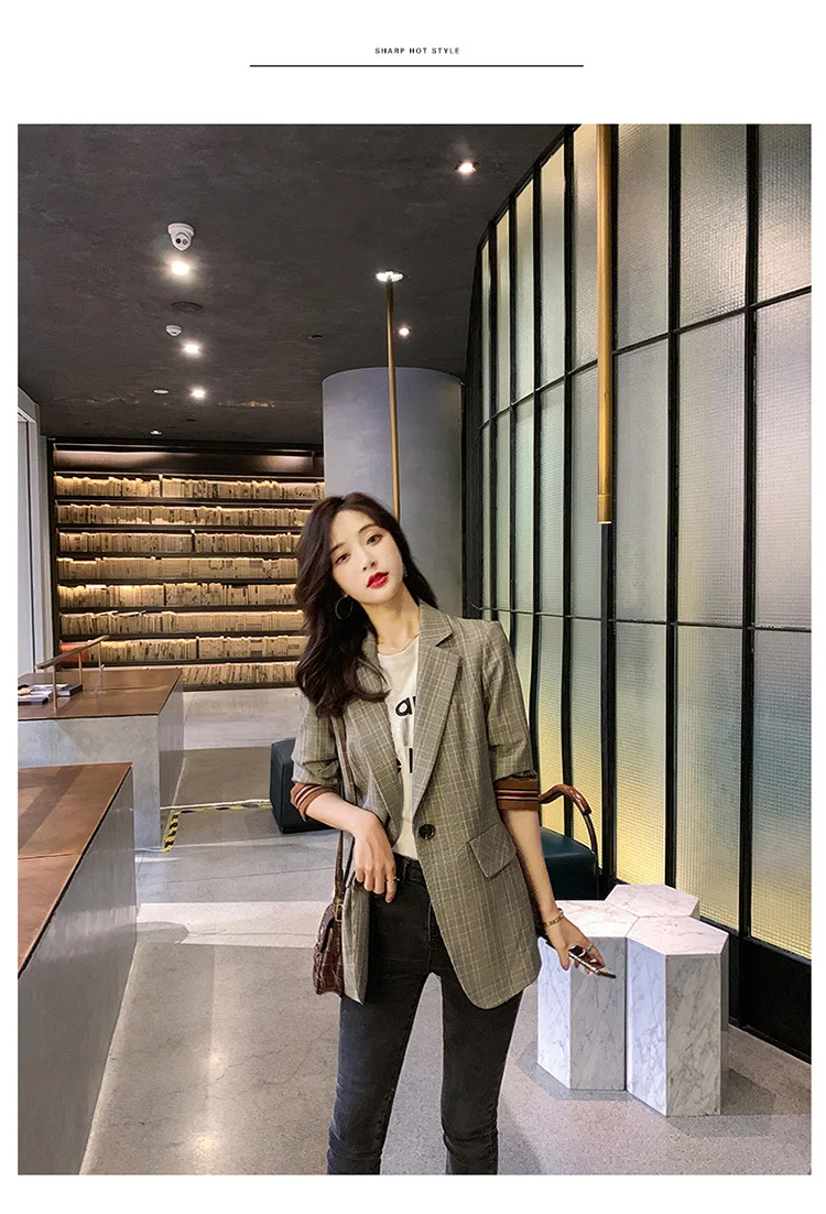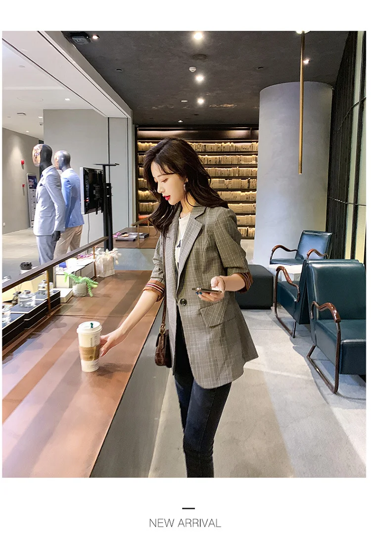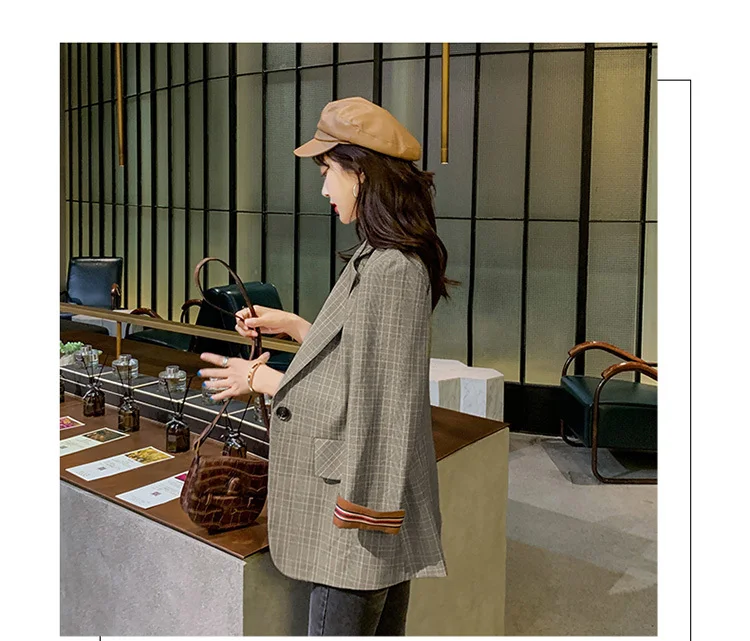 | New zakiety damskie elegancki Elegant Style Coat Plaid Printed Turn Down Collar Brief Coat Outwear jackets for women vadim |