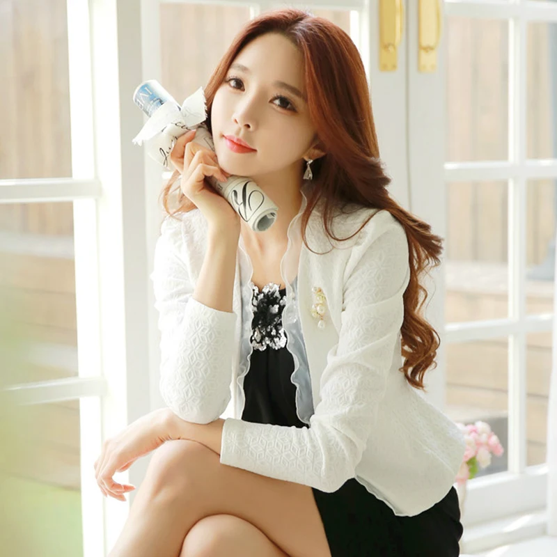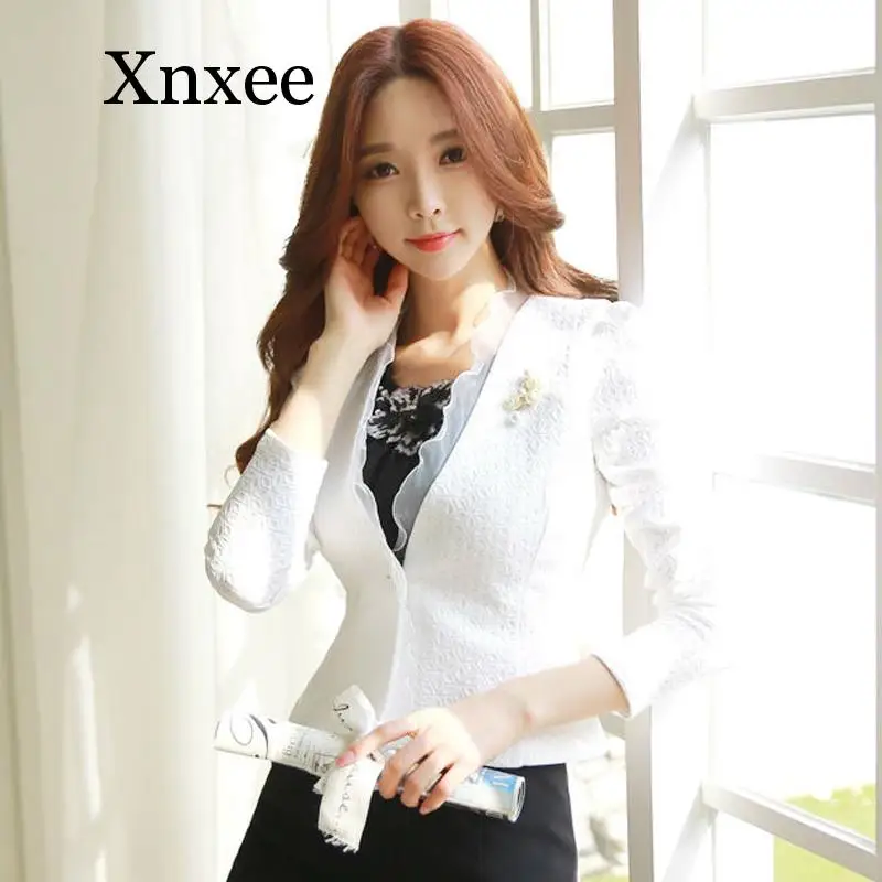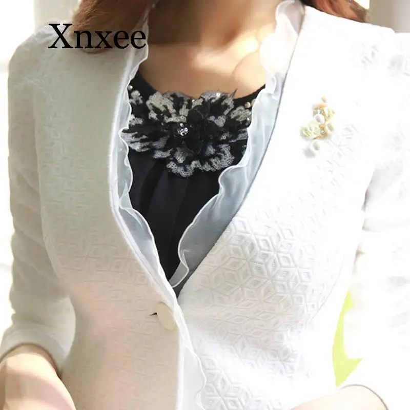 | Spring Autumn Women Blazer White Mesh Bordered Ruffled Slim Single Button Short Blazer Long Sleeve Jacket Coat Outwea kawaii |