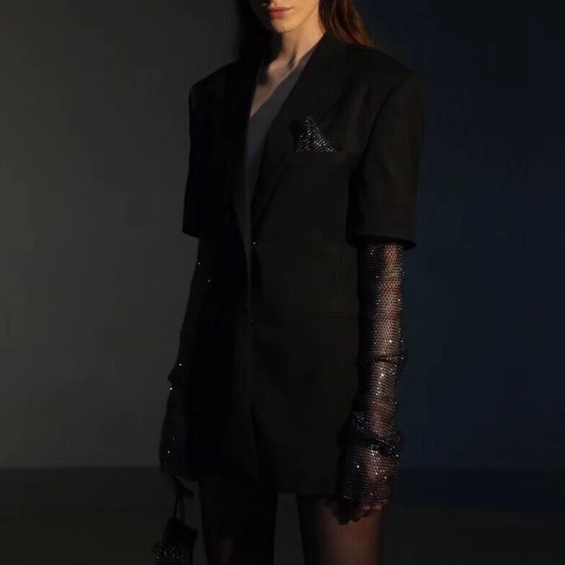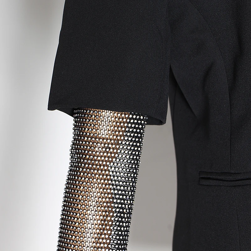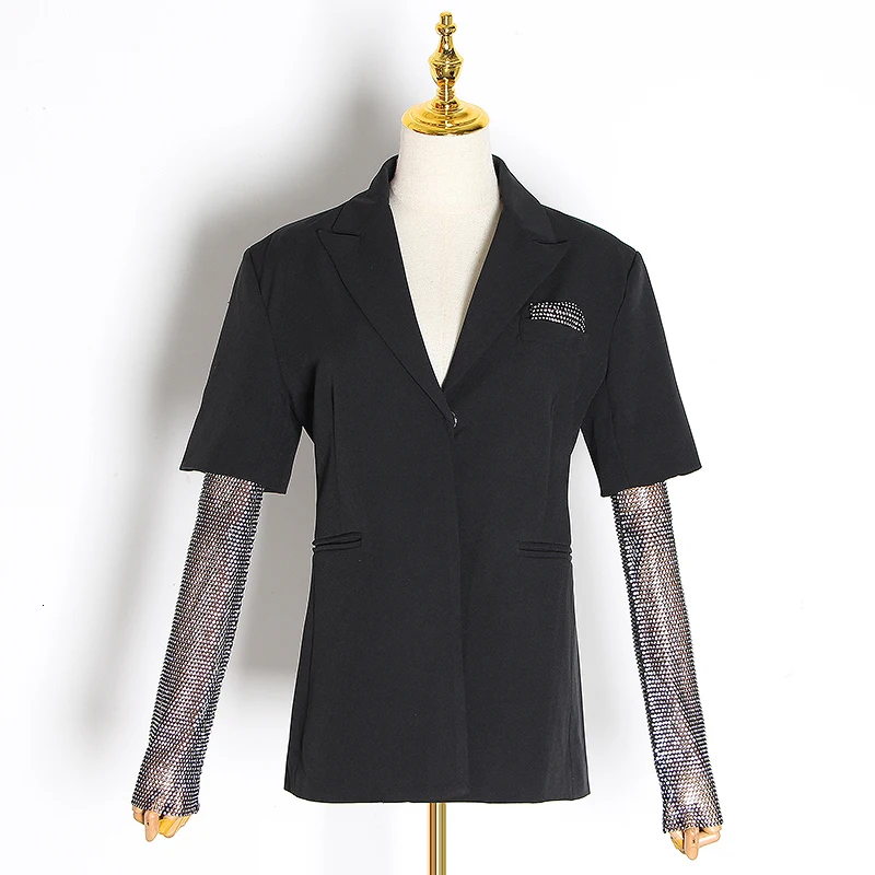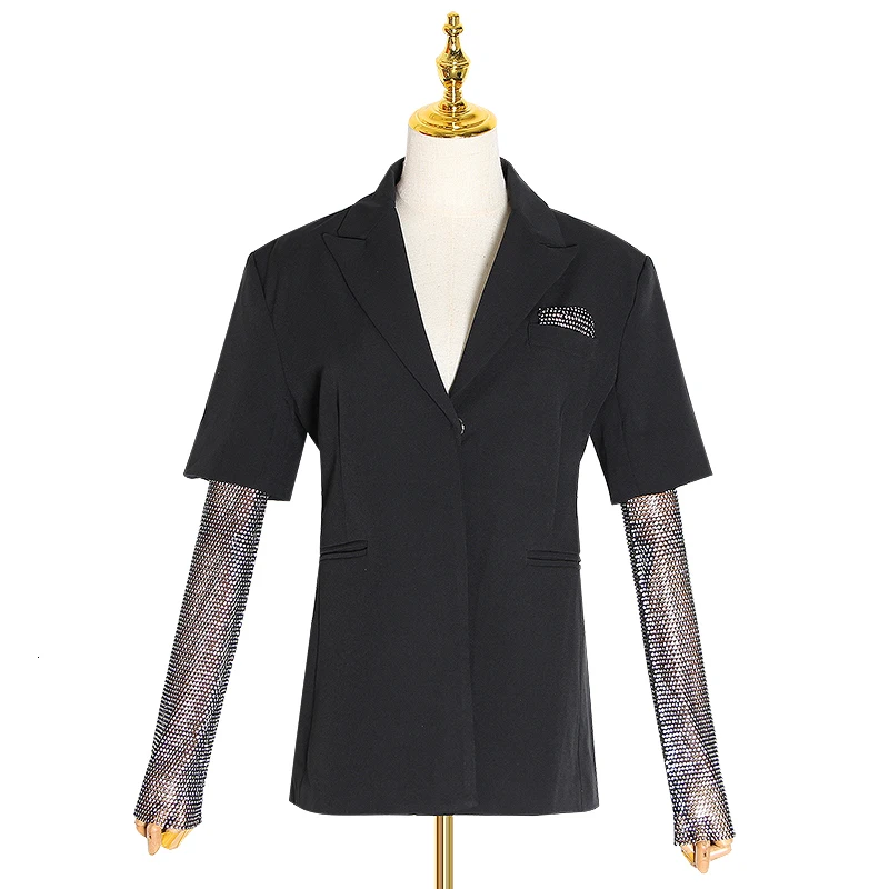 | Summer Solid Blazer For Women Long Sleeve Diamond Patchwork Long Elegant Coat Female Fashion Clothing 2019 New |