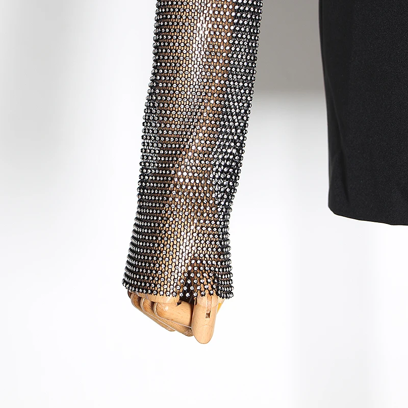 New Chic Fashion Bling Sleeve Diamond Embroidery Blazer Woman Black Solid Streetwear Fashion Long Jacket Female 2019 AutumnBuy Now On Aliexpress