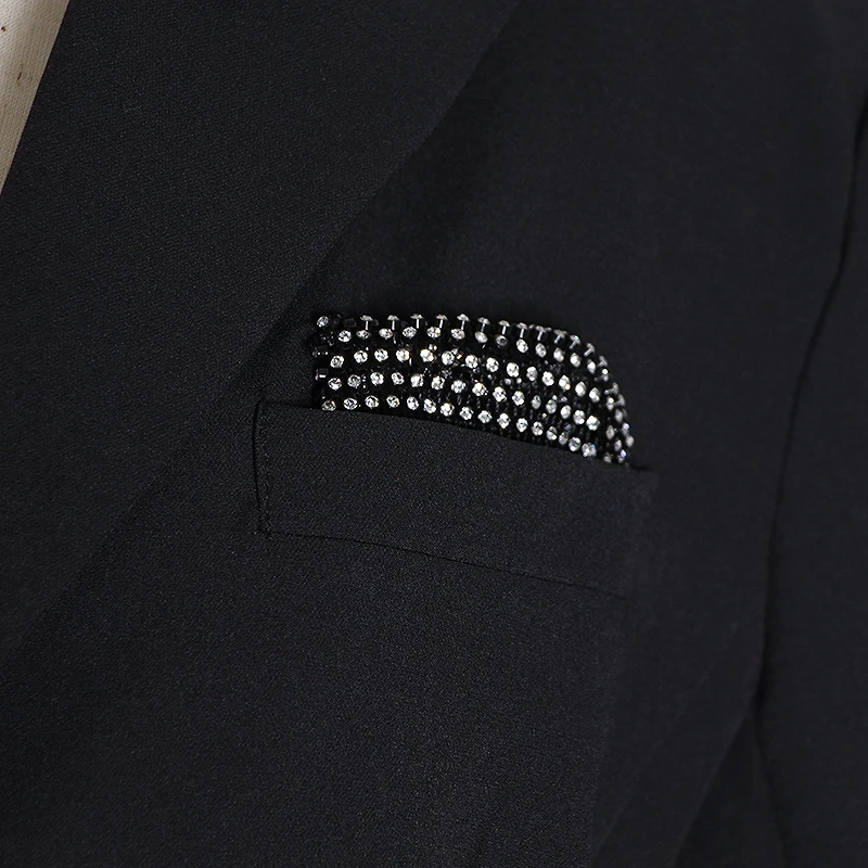 Bling Diamond Sleeve Blazer Jacket Woman Notched Collar Black Solid Pocket Runway Designer Long Blazer Coat Woman 2019 Autumn