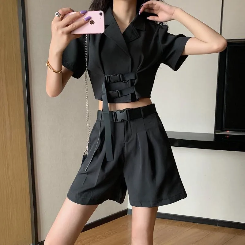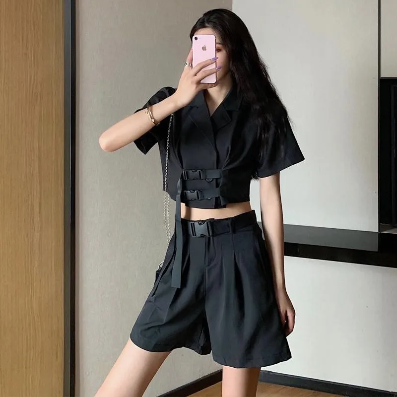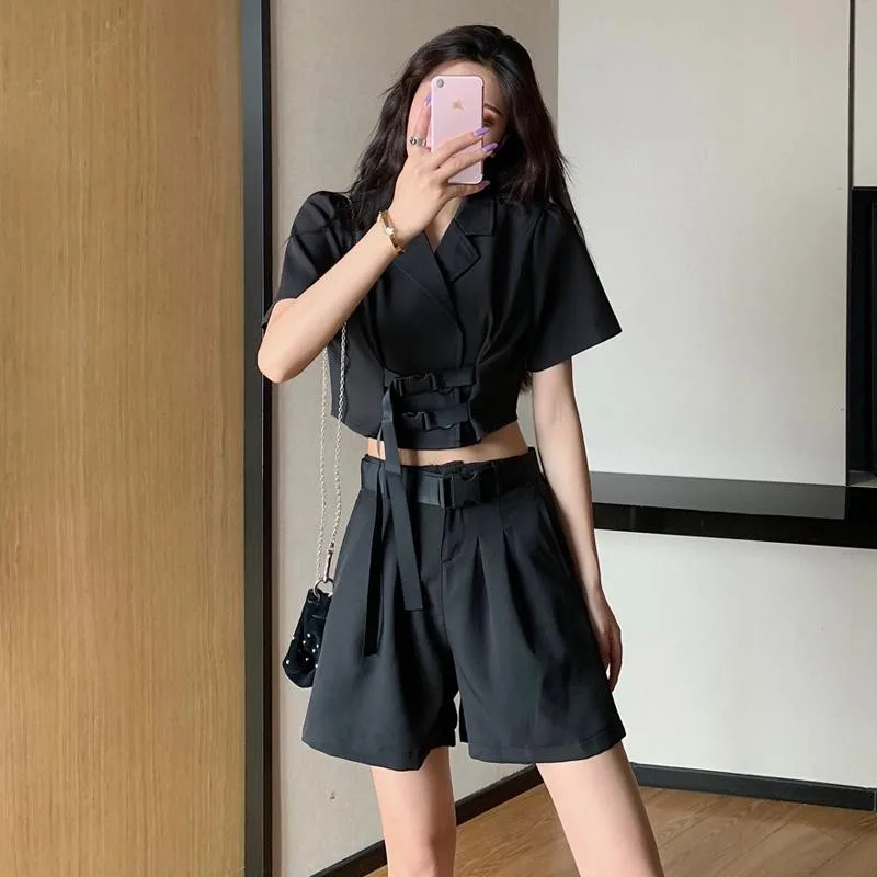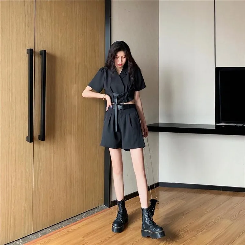 | two-piece suit Tops Shorts Slim suit Solid Color women Korean summer fashion 2020 new wide leg pants Shorts Short Blazer jacket |