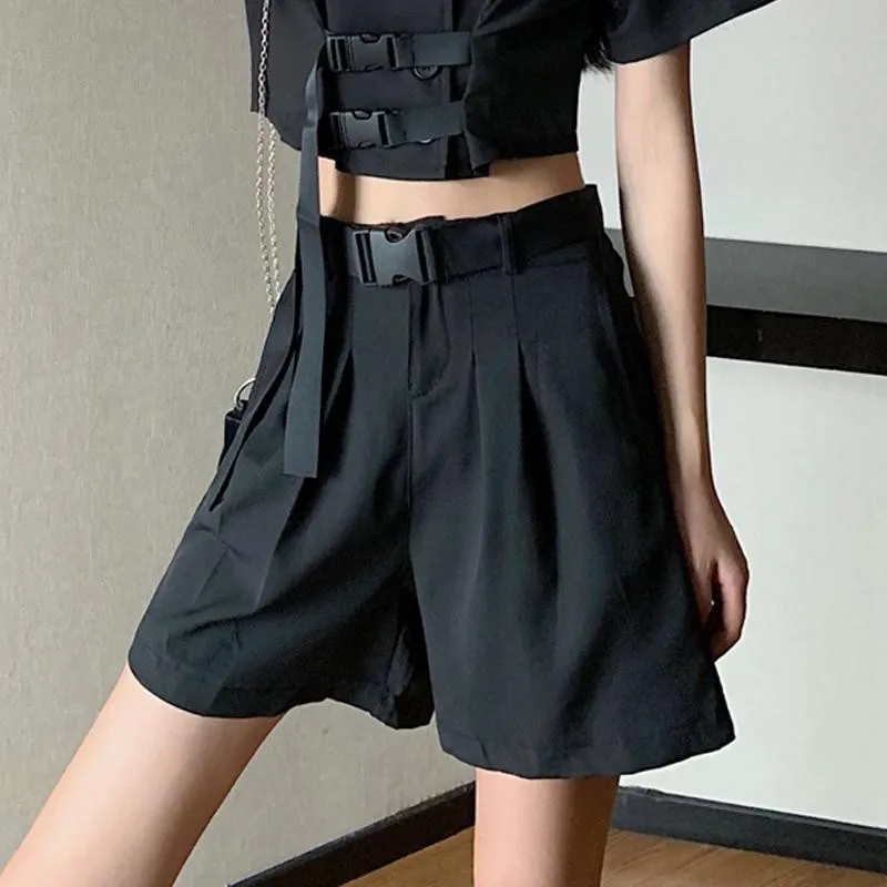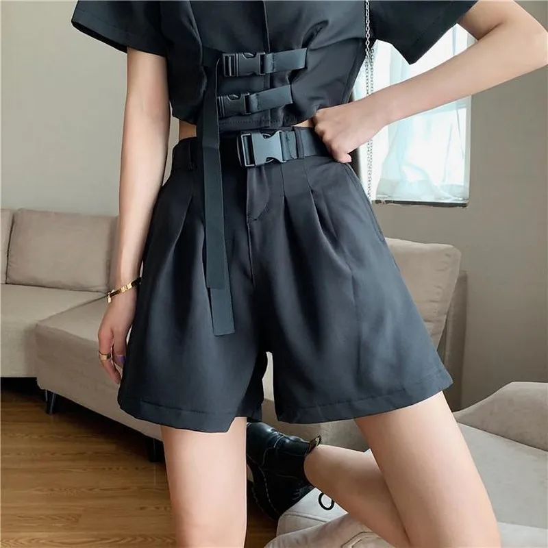 2020 Women Five Pointed Shorts Solid Black Grey Wide short Pants Unisex Students Casual Oversized Streetwear Hip Hop Punk StyleBuy Now On Aliexpress