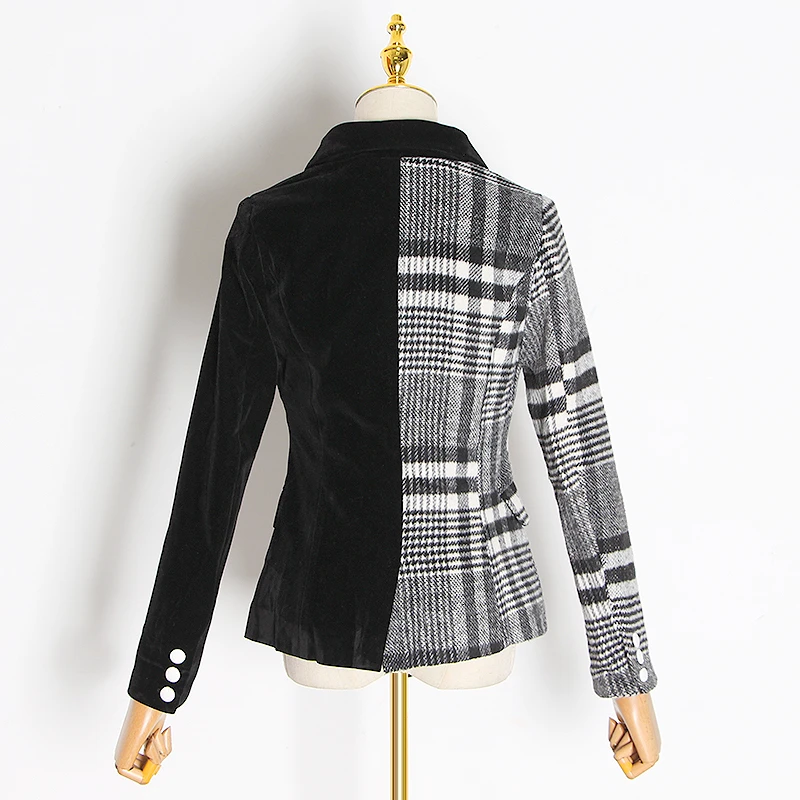 Velour Patchwork Wool Plaid Blazer Coat Female Long Sleeve Asymmetrical Blazer Women's Suits 2019 Autumn Fashion Clothes
