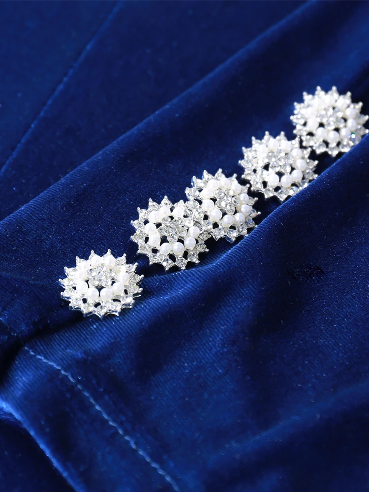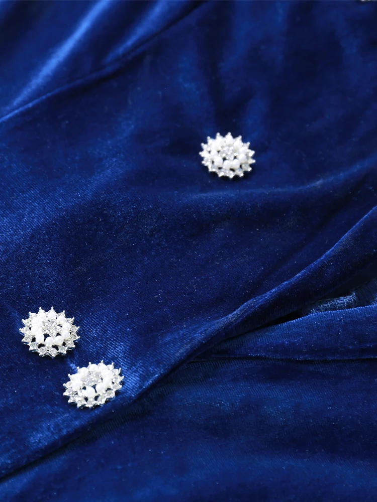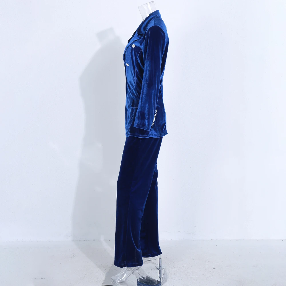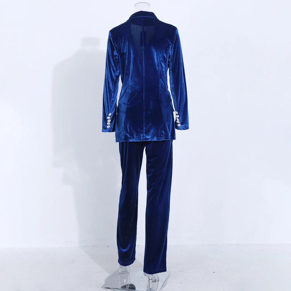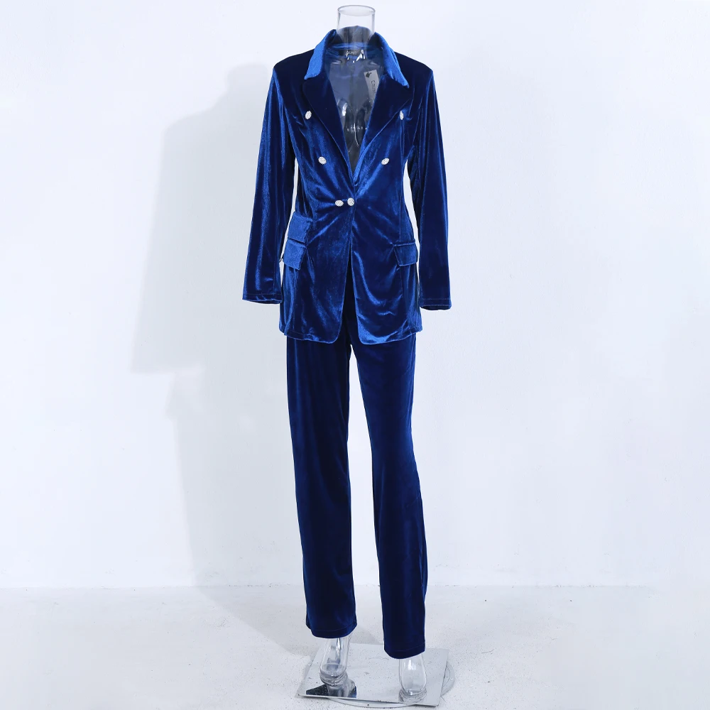 Women's Velvet Winter New Crystal Buckle Set Long Sleeve Jacket & Pants 2 Two Piece Set Celebrity Evening Runway Party Suit