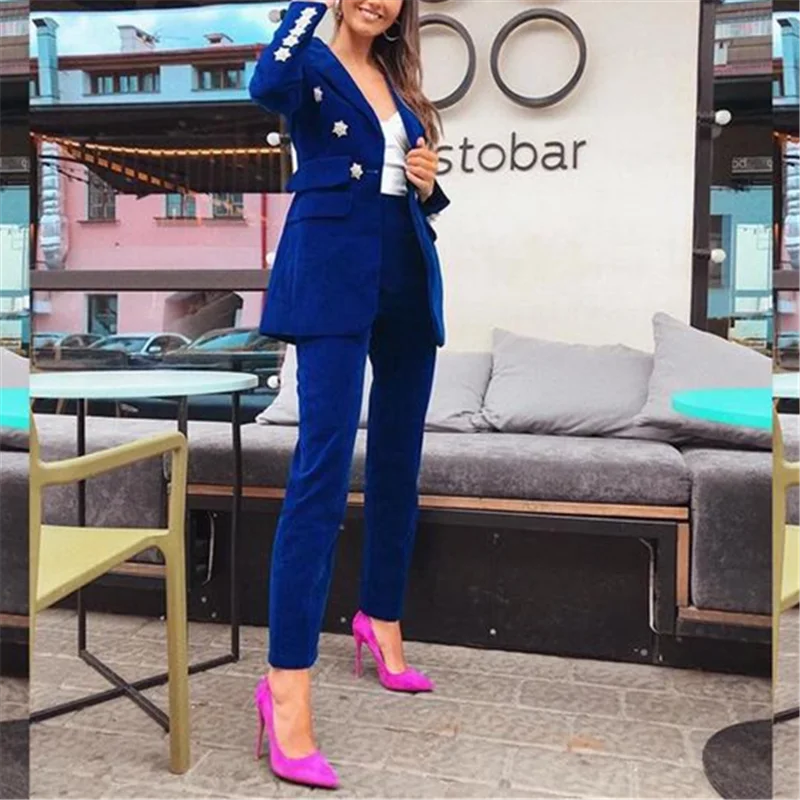 Best Price Comparison With Yesexy 2020 Elegant Velvet Double Breasted Women Blazer Suit Autumn Winter Long Sleeve 2pcs Office Lady Women Suit Set MQ272