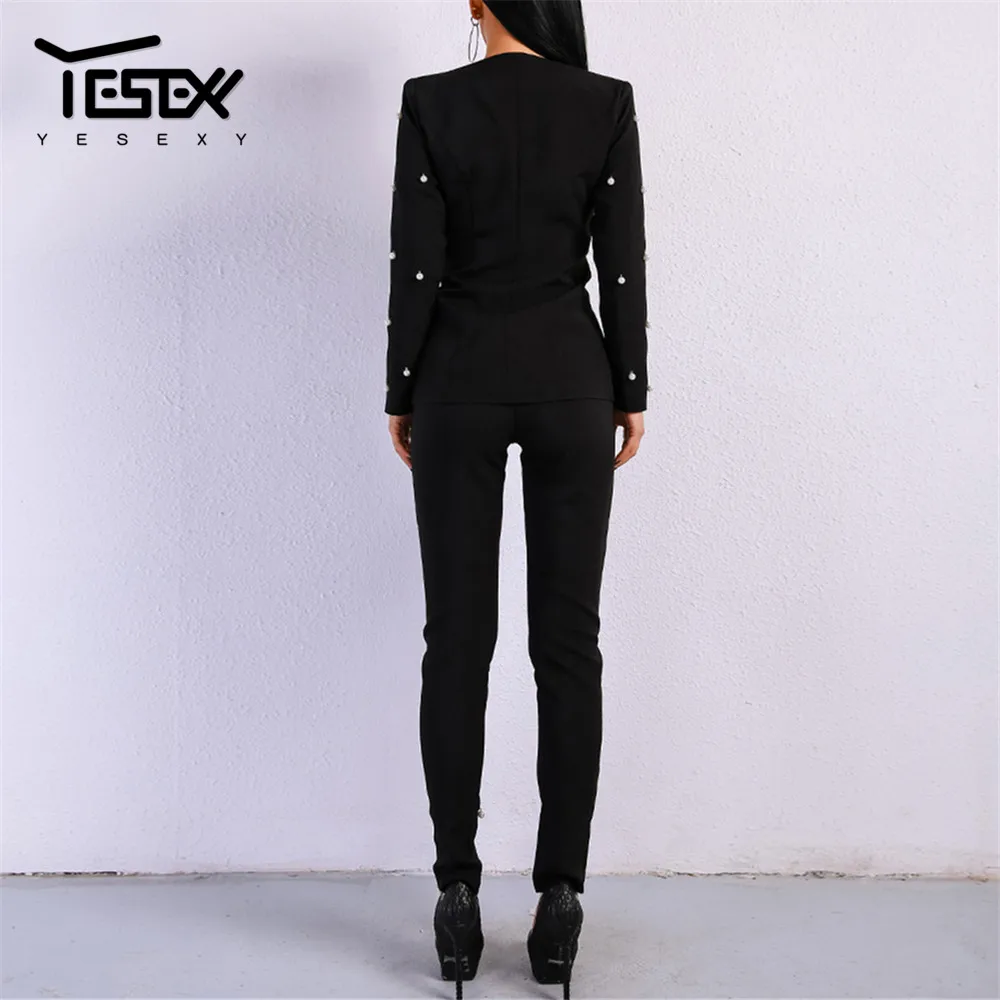 | Yesexy 2020 Sexy Long Sleeve Deep V Neck Women Blazer Suit Set Two Pcs Autumn Winter Solid Color Elegant WomenSuit VR8720 |