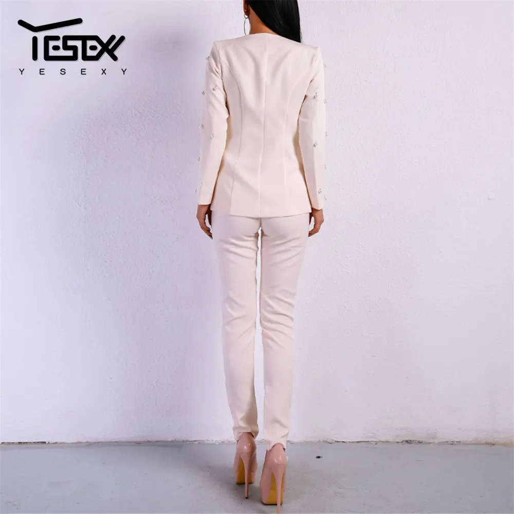 Yesexy 2020 Elegant Office Lady Women Suit Set Single Button Solid Color Long Sleeve Women Blazer Coat Pants Women Set VR19500