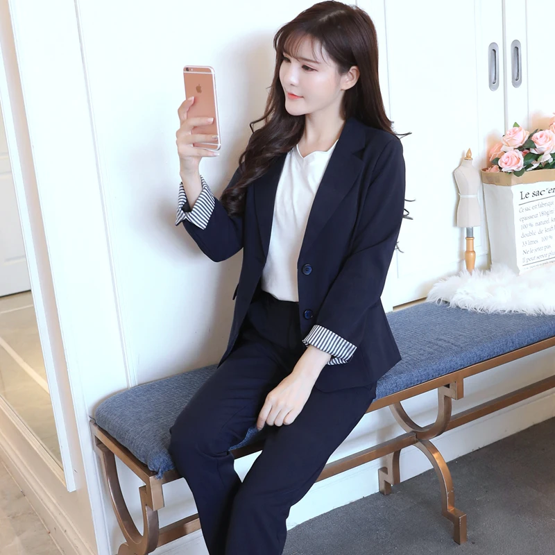 2020 Spring New Womens Two-piece Set Korean Casual Solid Business Suit Single Button Blzaer+ankle-length Trousers Female ClothesBuy Now On Aliexpress