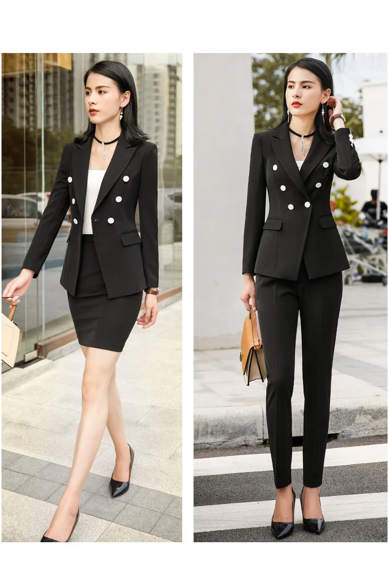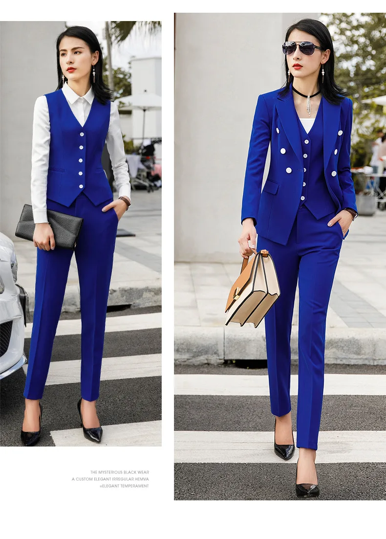 Black Blue Female Elegant Women's Skirt Suits Suit Dress Costumes Office Wear Blouse Skirt and Jacket Set 2 Set Piece Vest ShirtBuy Now On Aliexpress