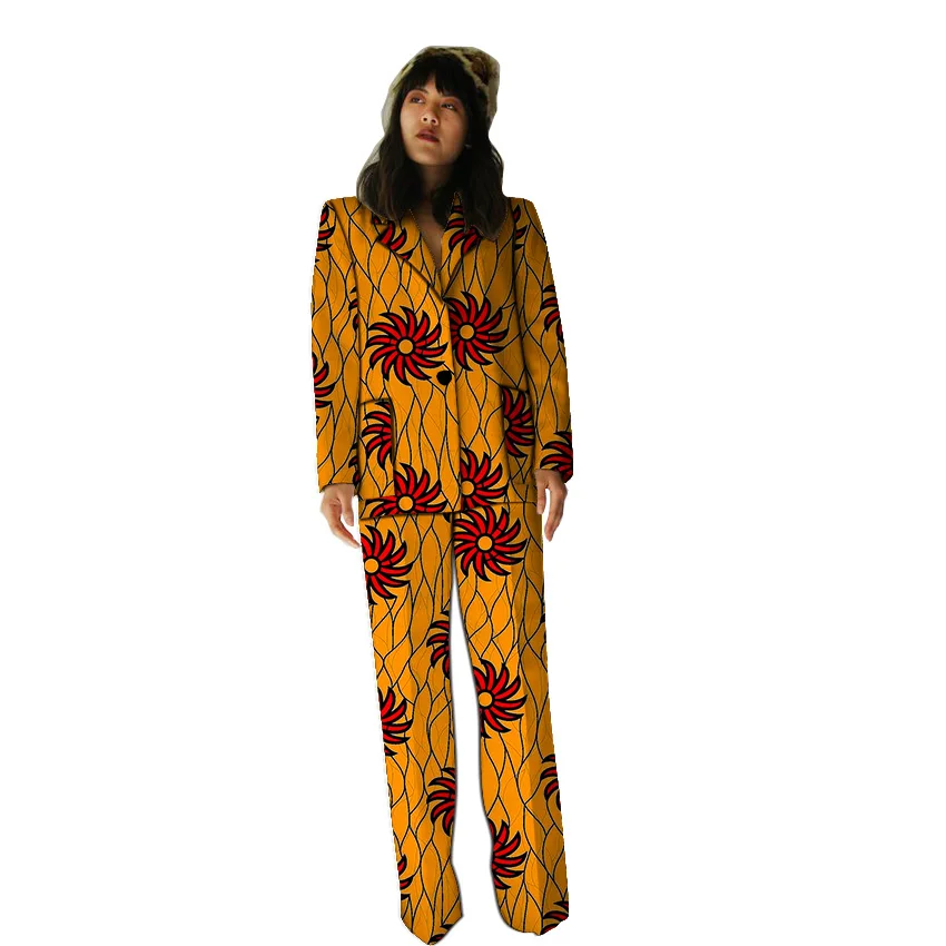 | Casual blazers with trouser for women custom African pant suits dashiki print elegant Ankara suits |