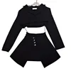 2019 Winter Black Ladies Set Long Sleeve V-neck Studded Blazer High Waist Pants Casual Two-piece Celebrity Runway Party SetBuy Now On Aliexpress