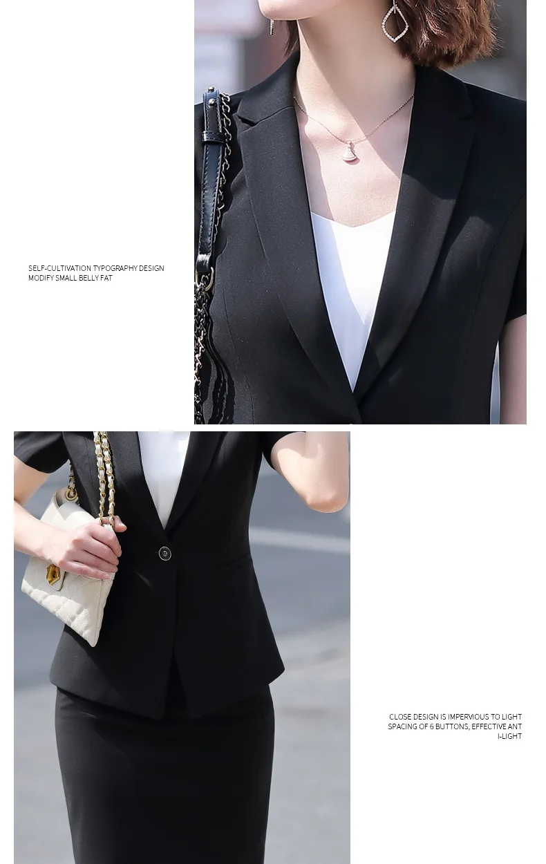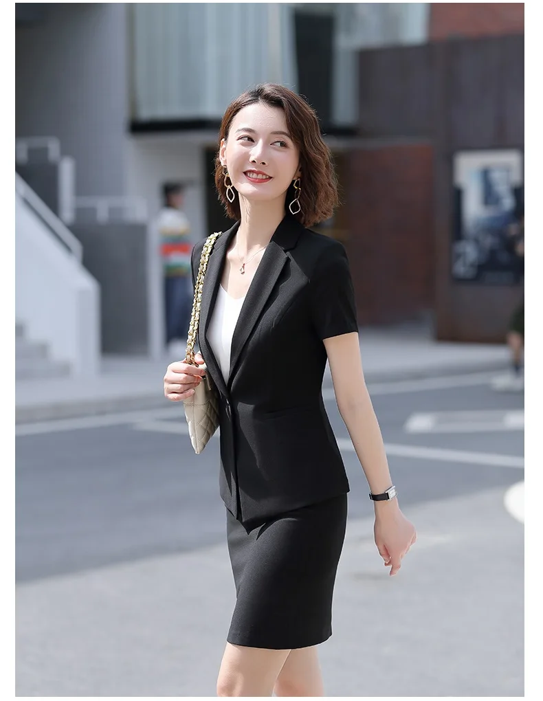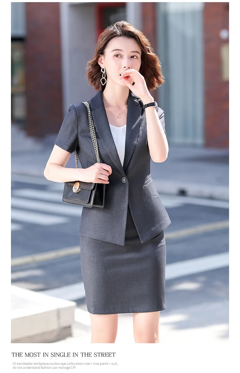 | Female Elegant Formal Office Work Wear Summer Skirt Suits Women Business Suits Grey Black Blazer and Jacket Sets Ladies Clothes |