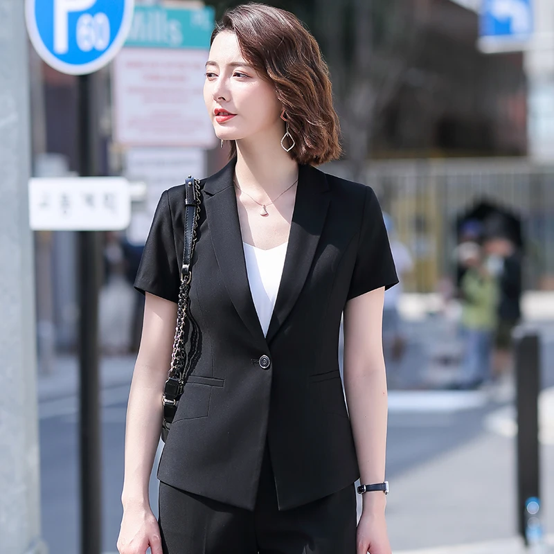 New 2020 Summer Women Formal Pant Suits Short Sleeve Blazer and Pants Office Ladies Business Work Wear Suits Set 2 Pieces OL TopBuy Now On Aliexpress
