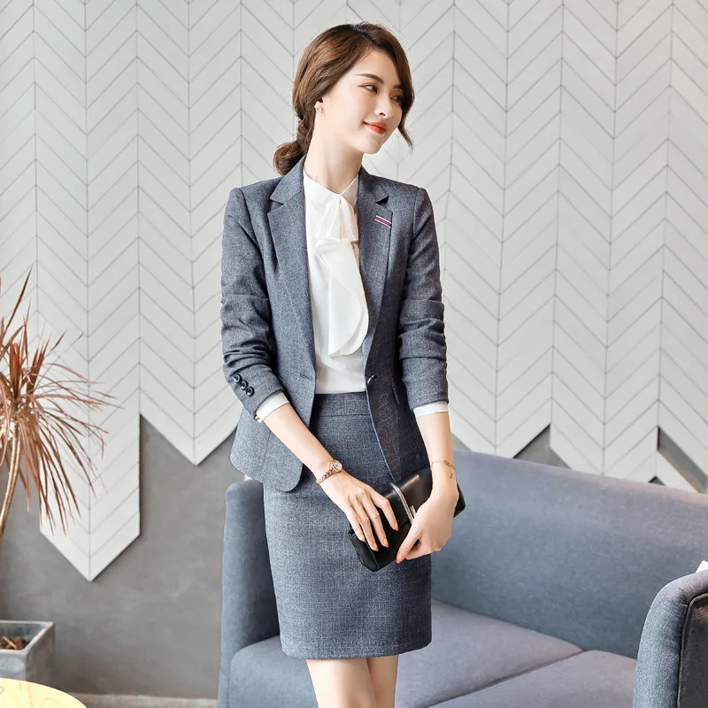 | Gray Formal Elegant Women's Formal Pants Suits Blazer Jacket Office Lady Work Business Uniform Trousers Clothing Two Piece Set |