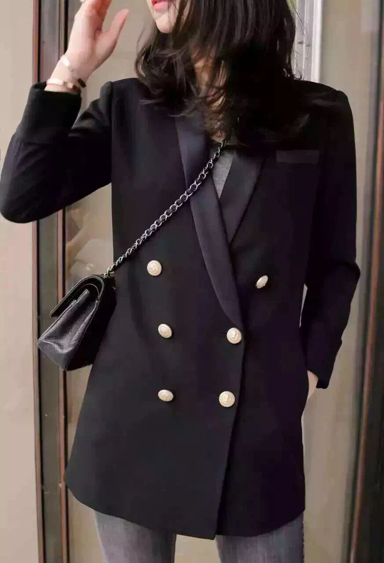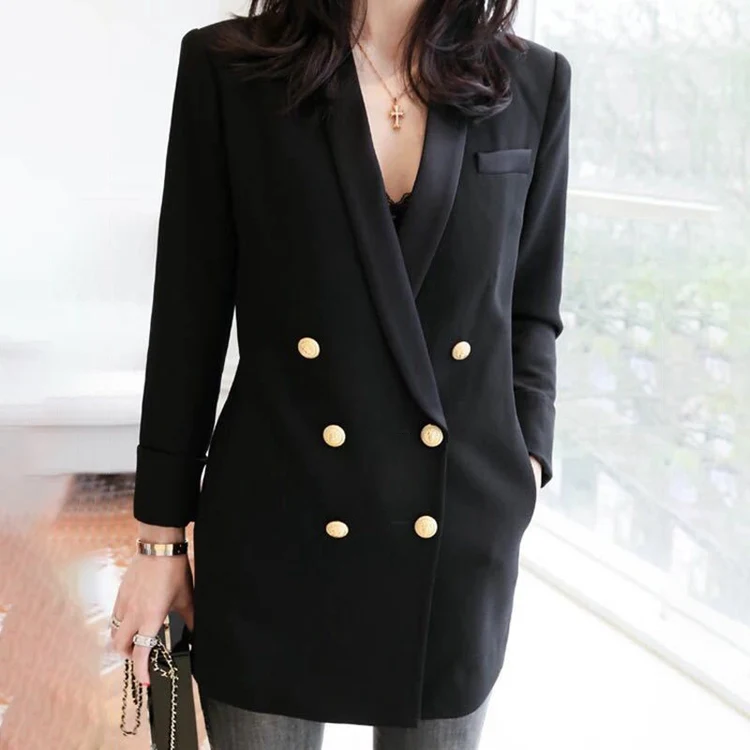 Long Blazer Suit Jacket Women Fashion Long Sleeve Coat Women Elegant Double Breasted Jacket Suits Female Office Ladies Plus Size
