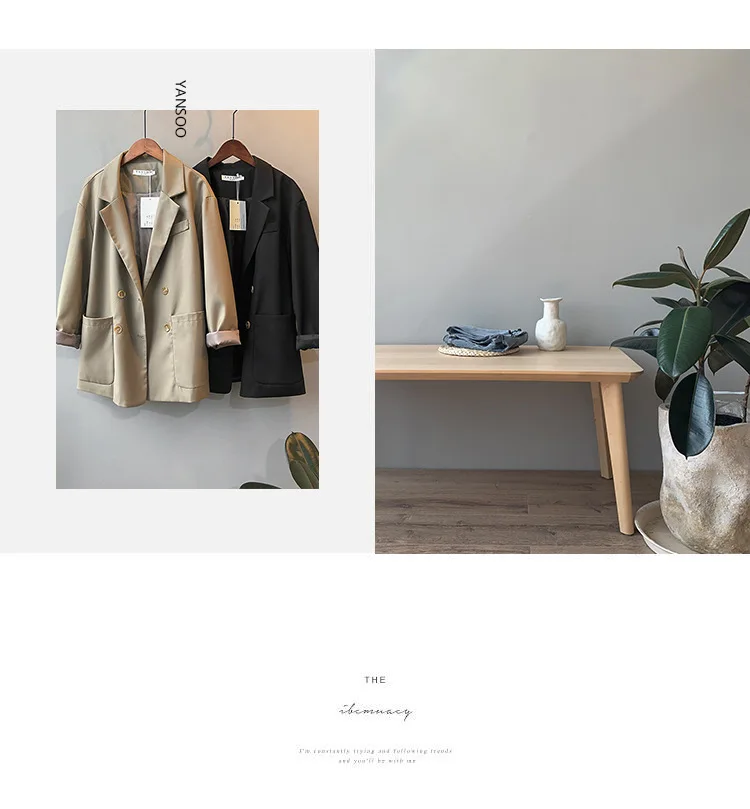 Womens Blzaers 2020 Spring Retro Net Red Casual Loose Plaid Double Breasted Straight Tube Suit Coat for Women Office LadyBuy Now On Aliexpress