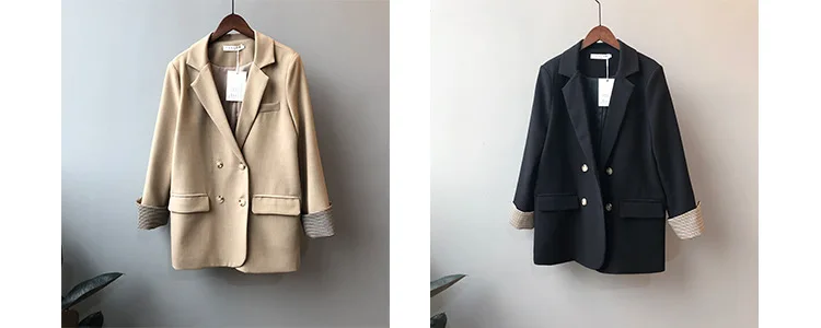 Womens Blzaers 2020 Spring Retro Net Red Casual Loose Plaid Double Breasted Straight Tube Suit Coat for Women Office Lady