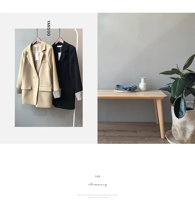 Moo-Ru 2020 Spring Edition Han Version Sweet Slim In Long Style Suit Lapel Long Sleeve Large Pocket Suit Jacket
