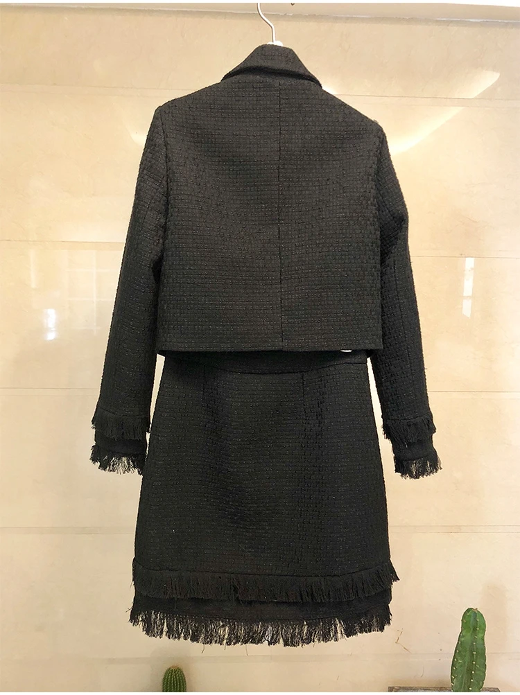 New 2019 Autumn High Quality Tweed 2 Piece Set Women Winter Bow Jacket Coat + Elegant Mini Tassel Pencil Wool Blend Skirt SuitsBuy Now On Aliexpress