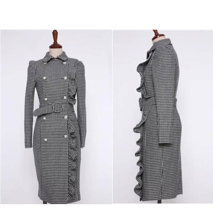| Vintage Double Breasted Plaid Long Blazer Dress Ladies Office Wear Suit Jacket Slim Bodycon Houndstooth Midi Dresses Female 2020 |