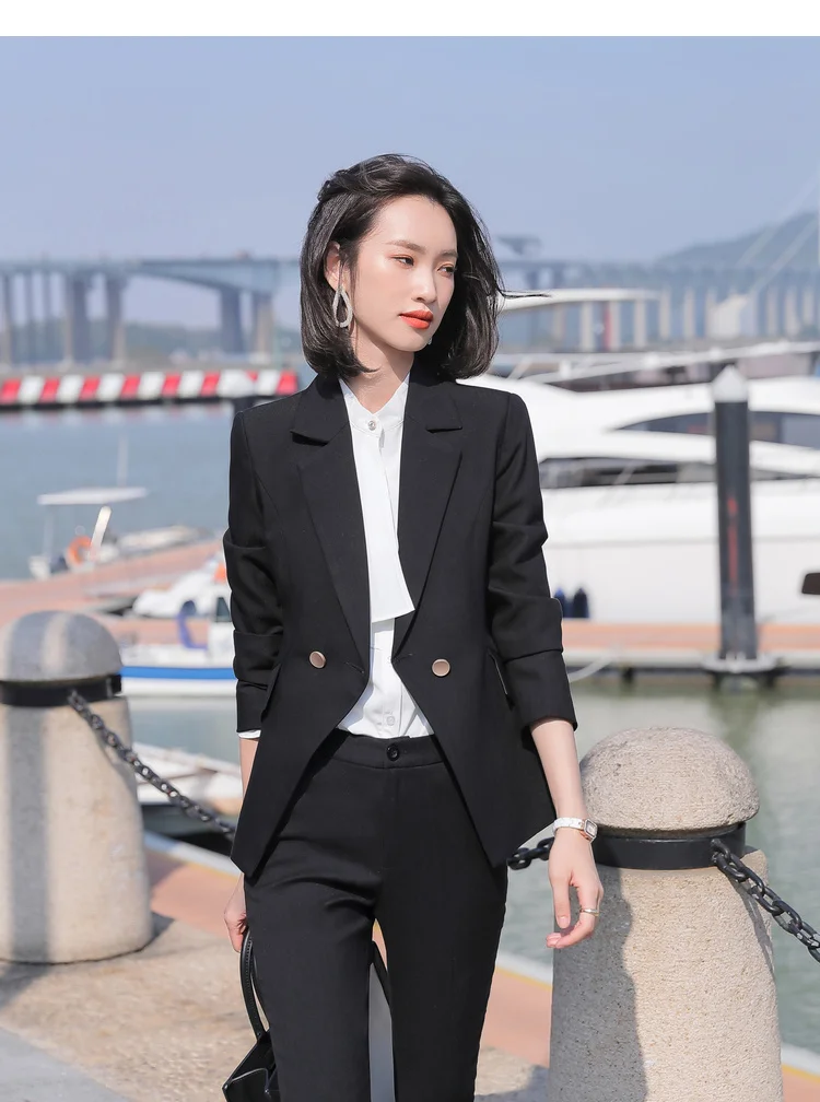 Female Elegant Formal Office Work Pant Suits 2 Pieces Set for Women's Suit Set Blazer and Trouser Pant Business Uniform ClothingBuy Now On Aliexpress