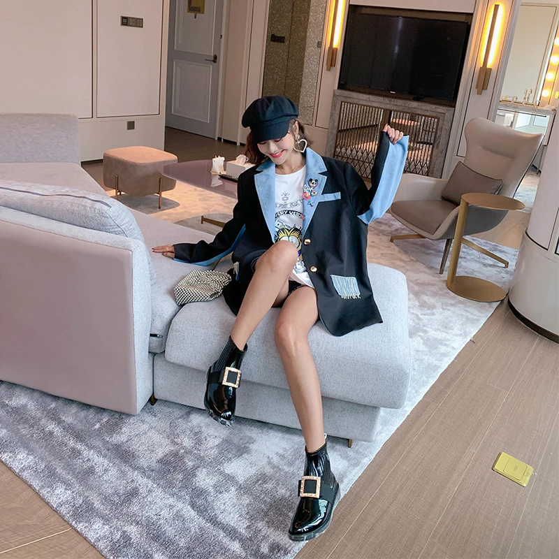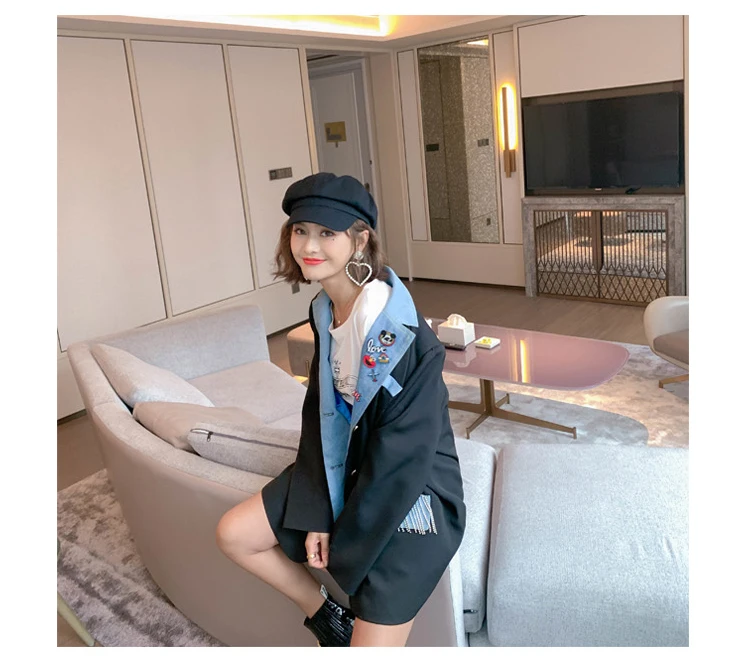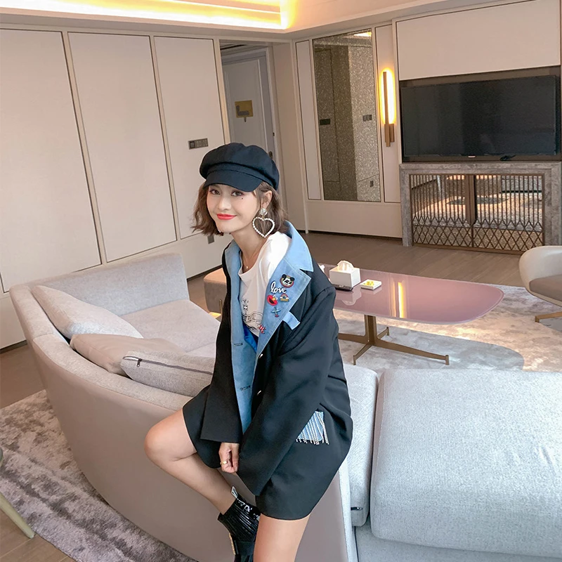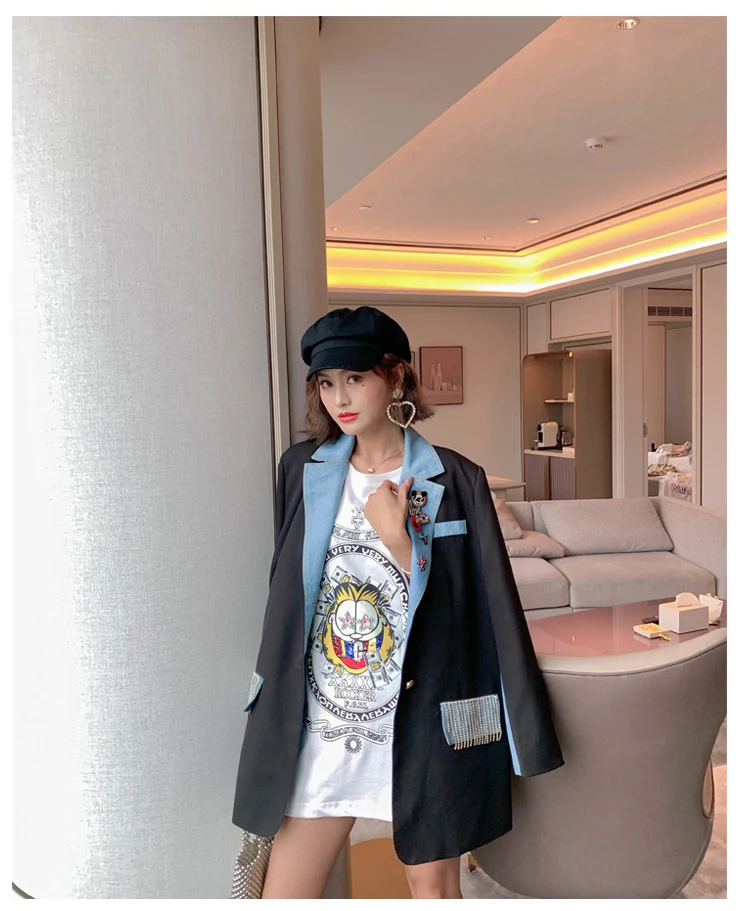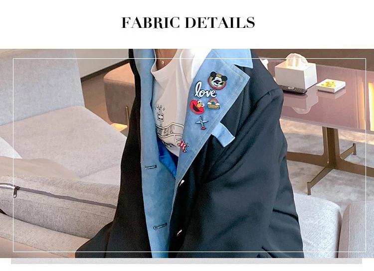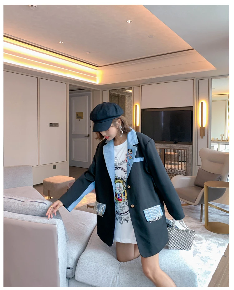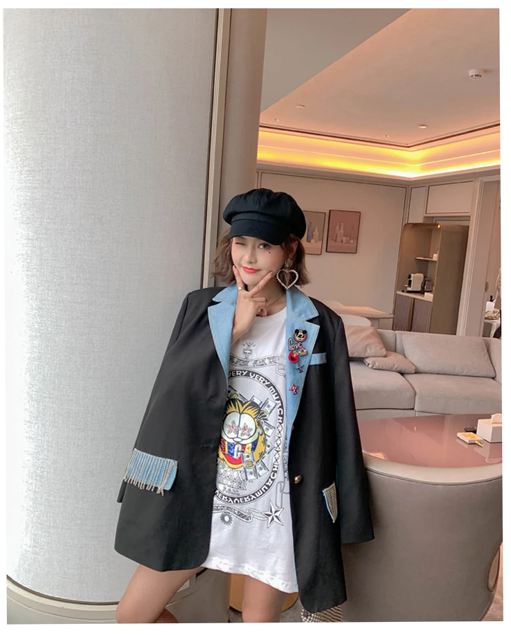 | 2020 Spring denim patch designs jackets fashion women sequins chic Blazers |