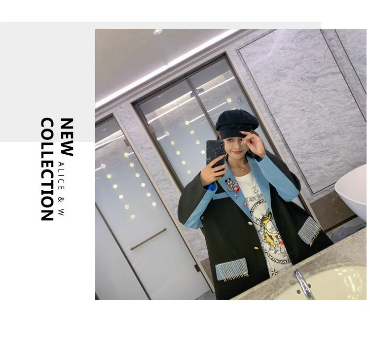 2020 Spring fashion sequins Blazers women cartoon v-neck bf long jackets