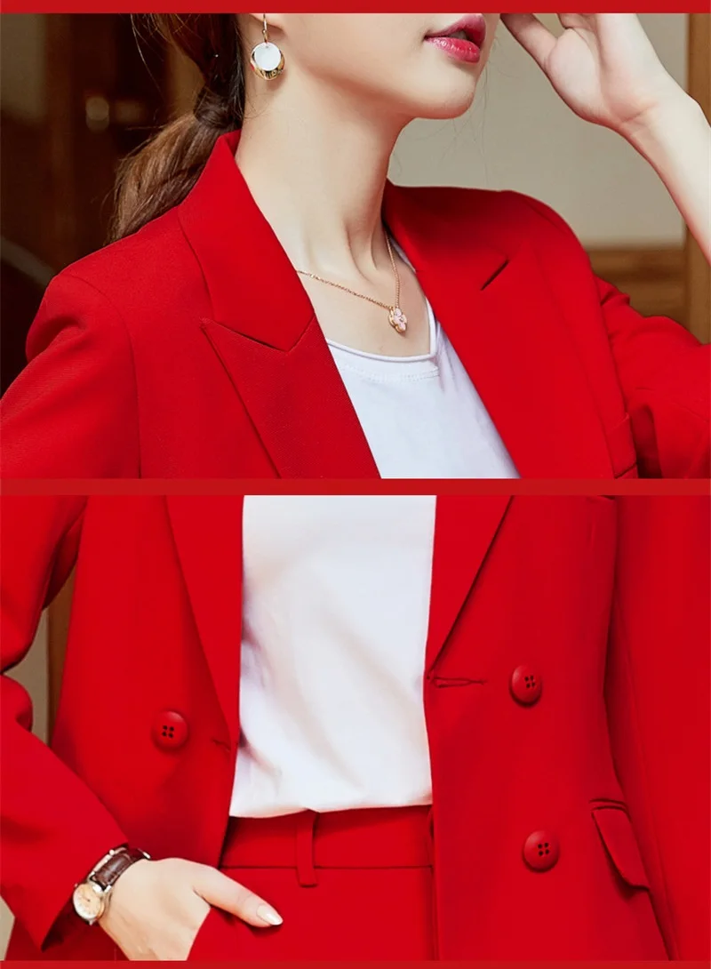 | Fashion Women Blazer and Jackets Red Blazer Ladies Business Clothes Double Breasted Female Elegant Formal Office Work Wear OL |